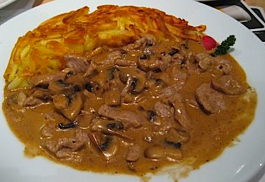 usually served with ” Roesti Potatoes “, sometimes with pasta .