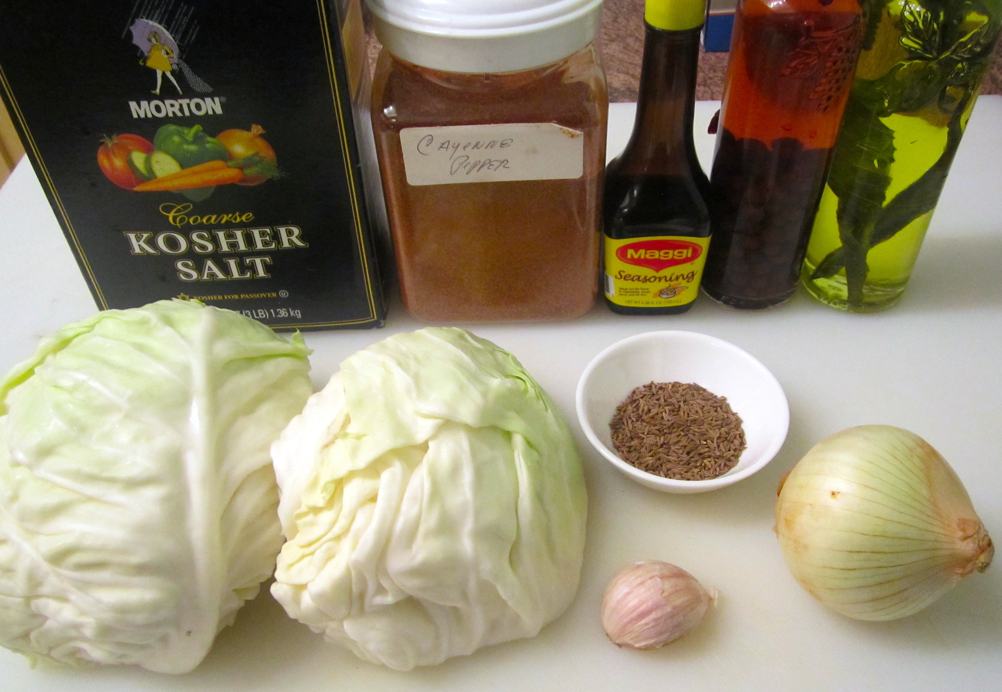 are cabbage, onions, salt, pepper, oil, vinegar,caraway seeds. Some folks (me) like to
