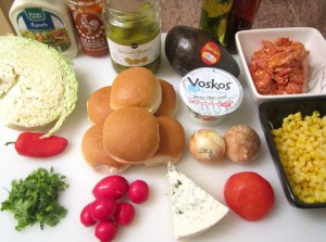 Put a dollop uf greek yoghurt on bottom bun, top with
