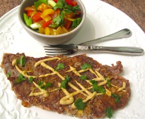 Sautee beef in VERY hot oil on both sides for one minute, remove to absorbent paper.
