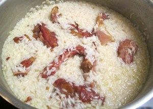 Below is a version I made on sunday for breakfast. The texture is more like a filipino Lugaw, with the rice VERY soft but still keeping it’s shape. At first I was not so sure about the smoked pigstails. I was worried they might be too overpowering. But not to worry. The taste was very rich with only a hint of smokiness. Another slightly unusual ingredient (served as condiment) was the freshly grated horseradish, although when you think of the japanese version Okayu, wasaby seems to be a fitting condiment. I prepare congee at home often, this version is definitely special and a great addition to my congee repertoire.