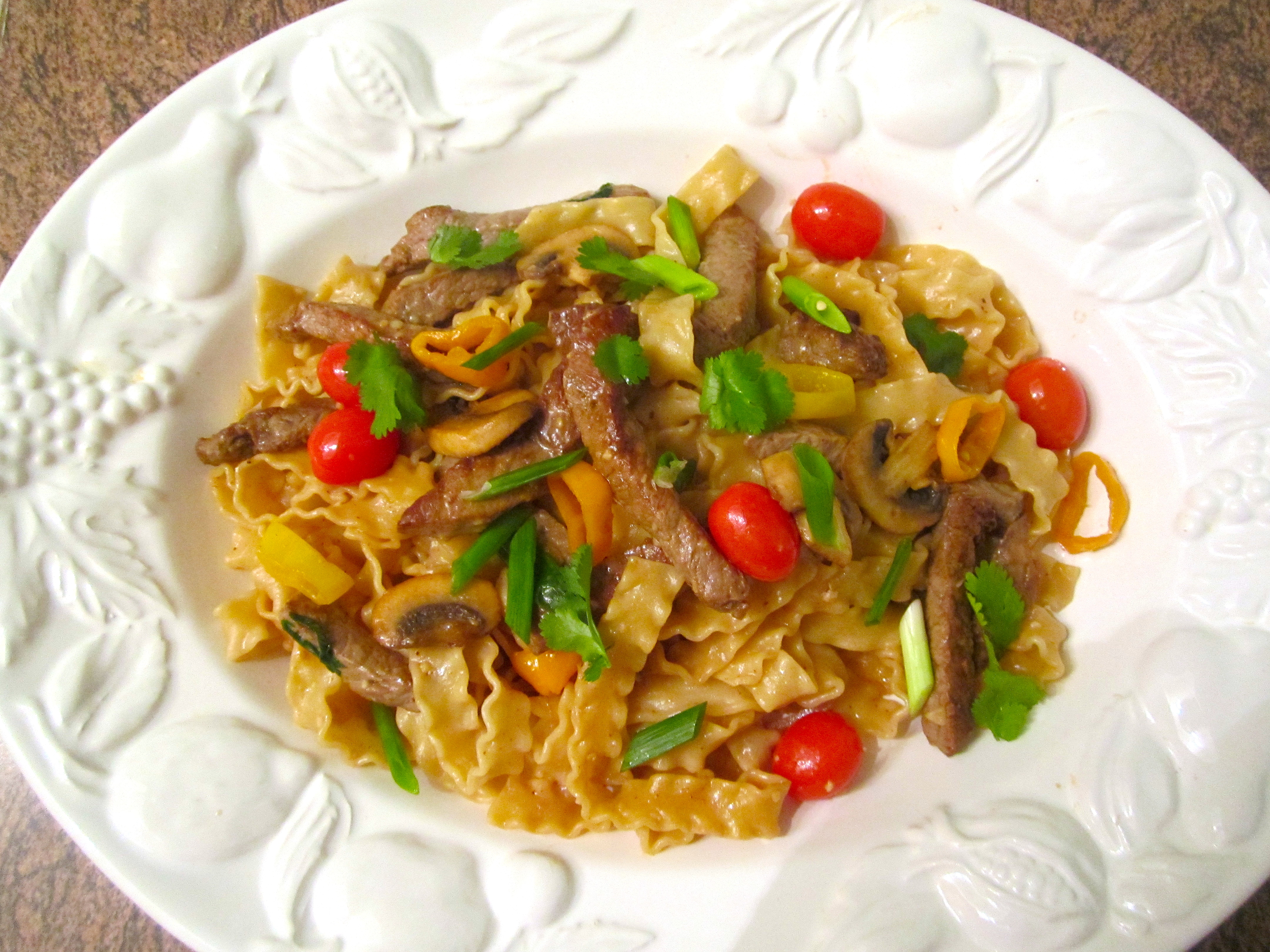 Mafaldine, Striploin, Mushrooms & Chilis