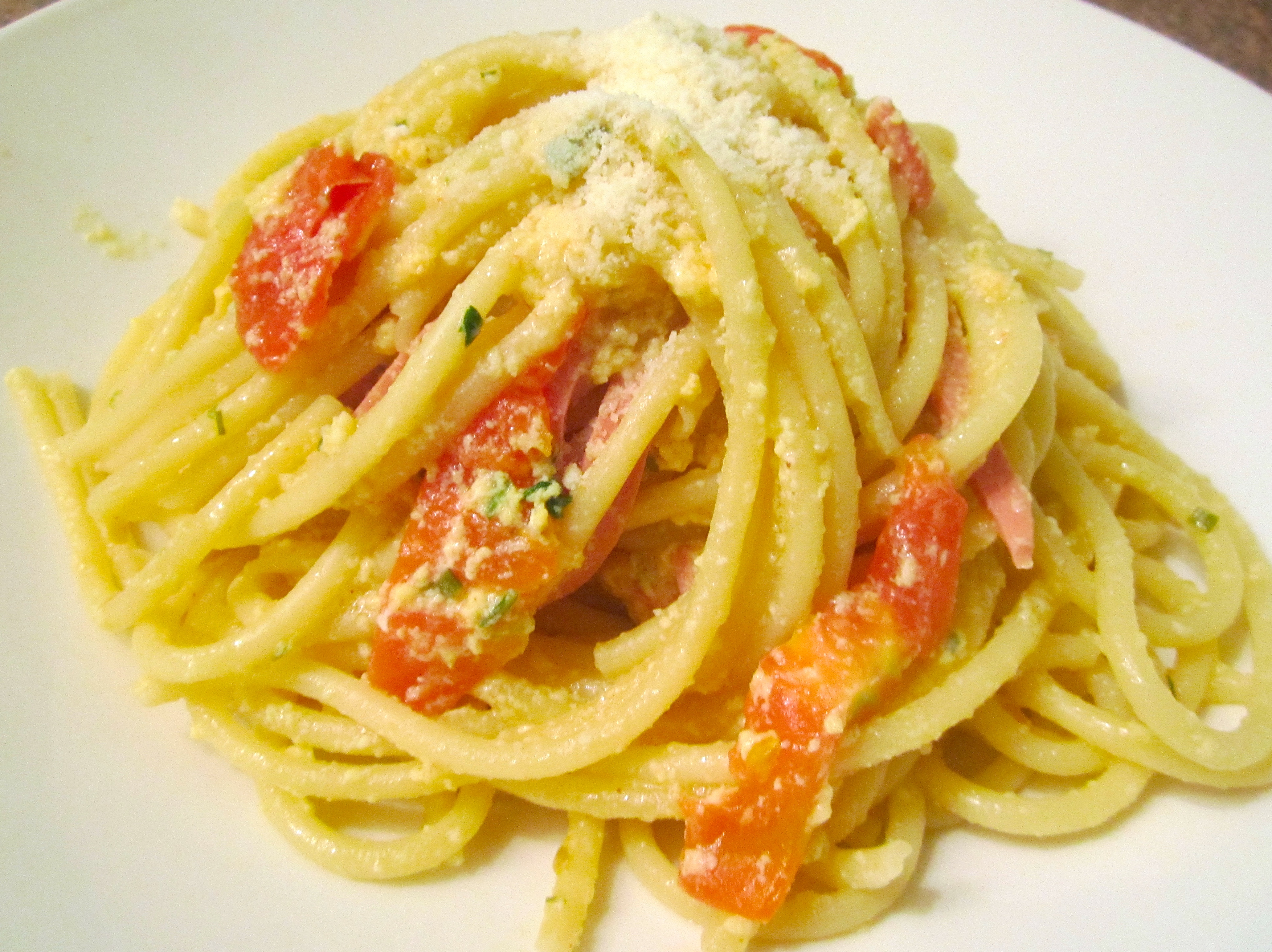 ” Bucatini, Bologna, Tomato, Asiago & Egg ”