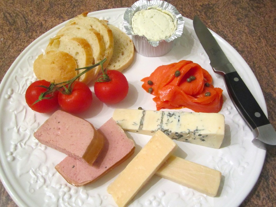 1 Next → Breakfast Of Champions # 24 – German Style Breakfast : Boursin, Gorgonzola, Liver Pate, Asiago, Smoked Salmon, Vine Ripened Tomatoes, Capers, Bread.