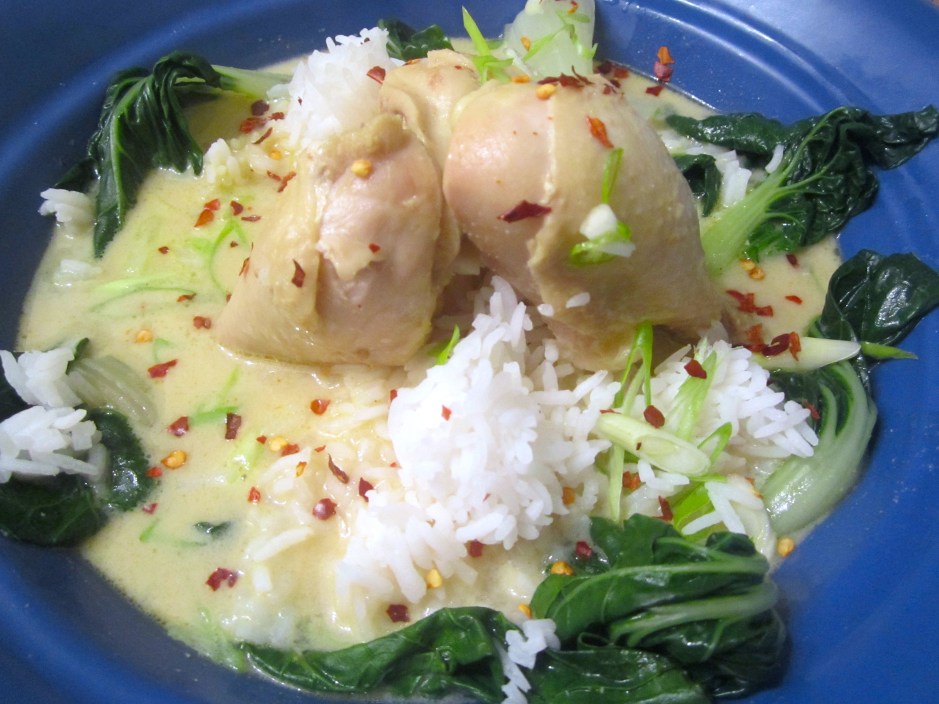 Chicken, Bok Choy & Rice In Spicy Coconut Broth