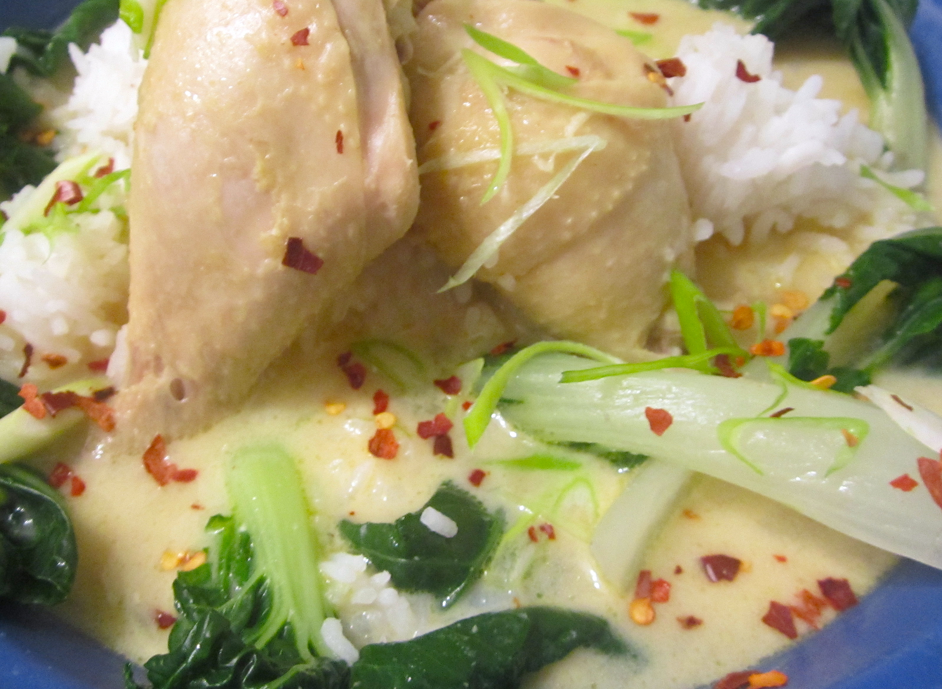 Chicken, Bok Choy & Rice In Spicy Coconut Broth