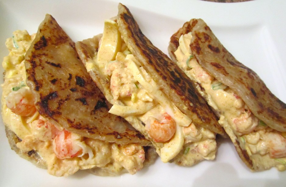Curried Langostino And Egg Salad Wrapped In Roti Prata ( 印度煎饼 )