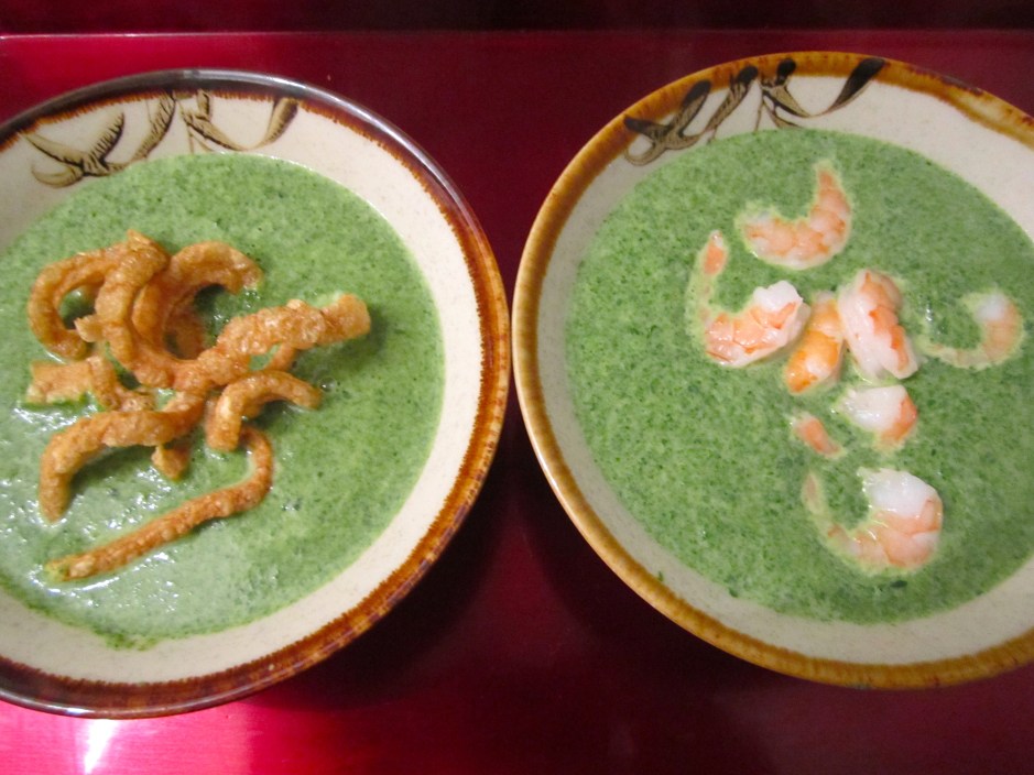 9c ← Previous Next → To serve, top with chicharones (crispy pork rind) and / or butter-sauteed shrimp