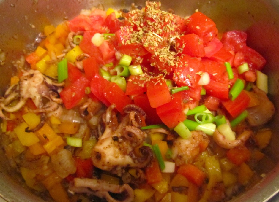 Add diced tomatoes and sliced scallions. Saute for one minute.