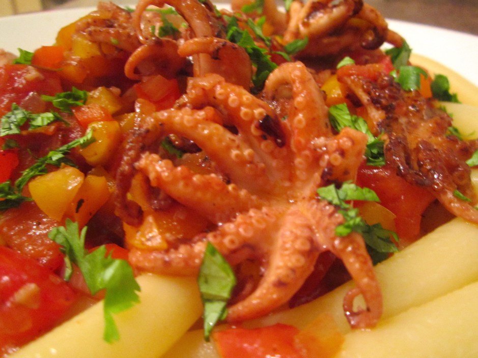 Baby Octopus In Spicy Salice Salentino/Bell Pepper Sauce Over Lunga Ziti