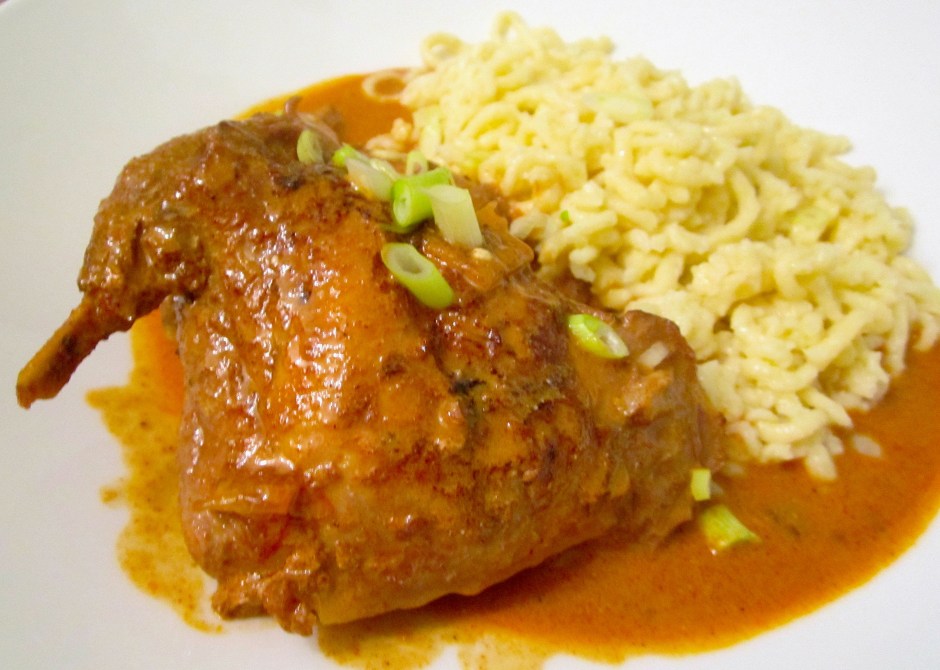 Braised Rabbit In Merlot/Sour Cream Sauce With Homemade Schwäbische Spätzle