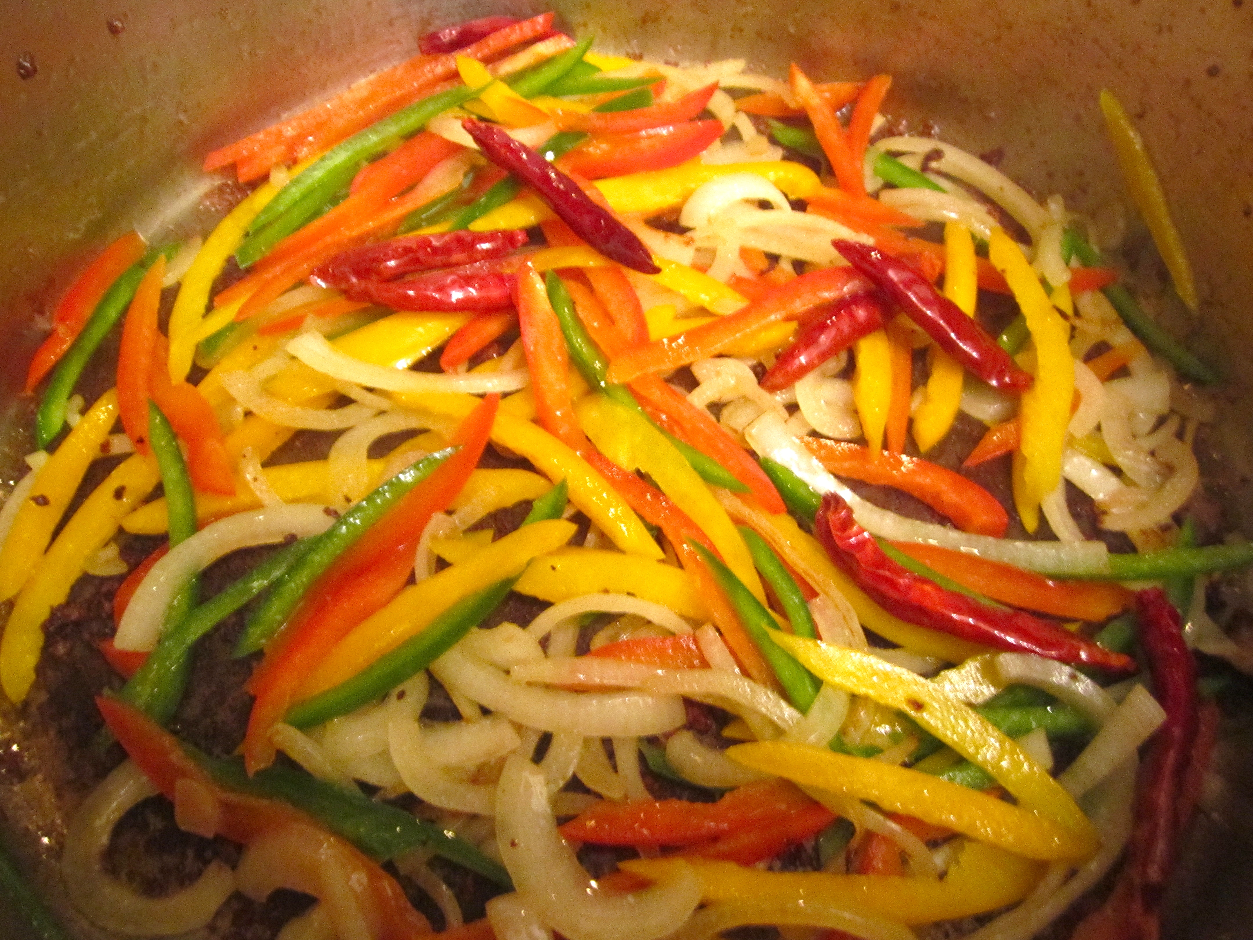 add peppers and roasted garlic purre, saute another minute