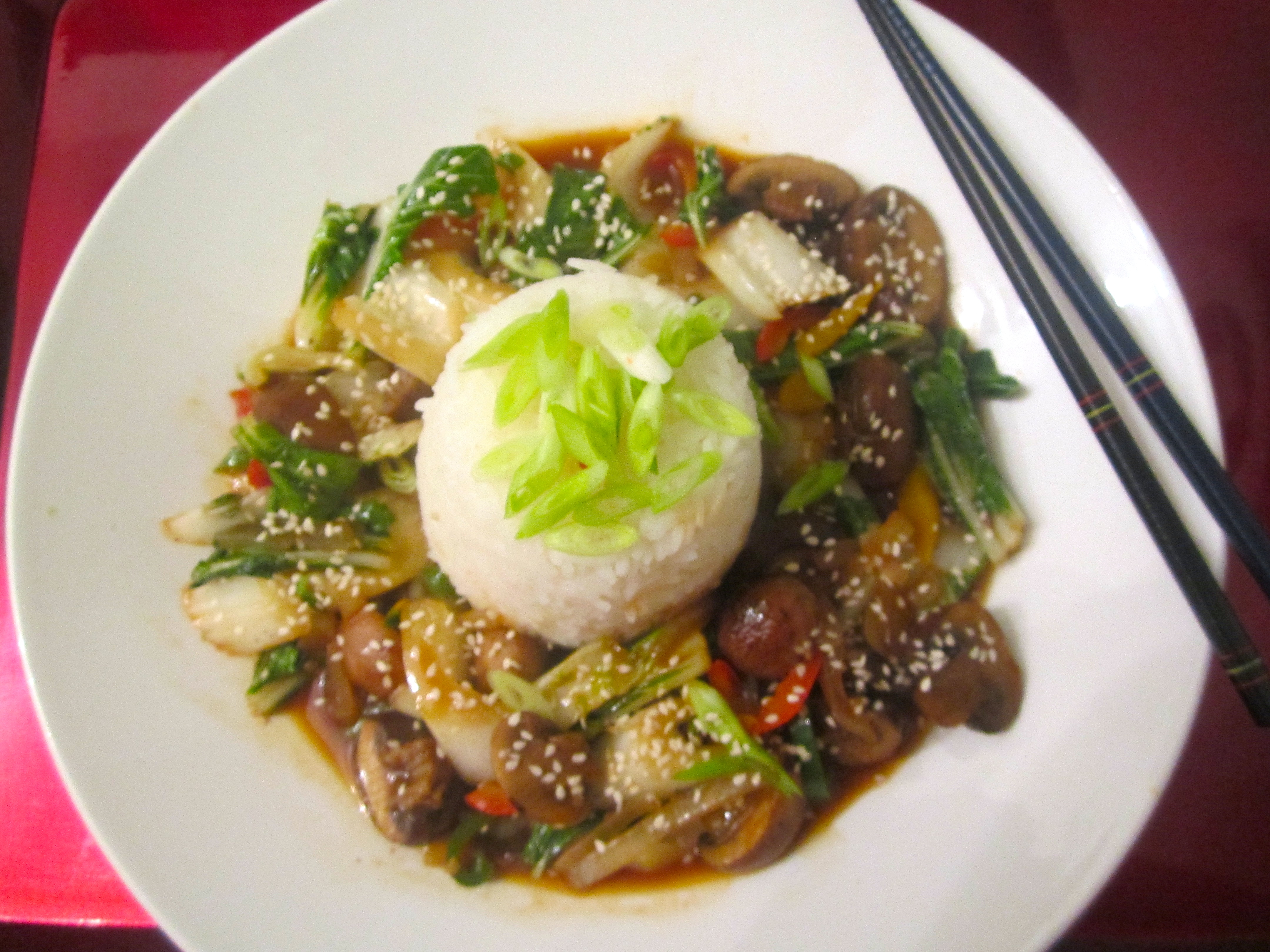 serve with Chinese steamed rice, sprinkle with scallions and sesame seeds