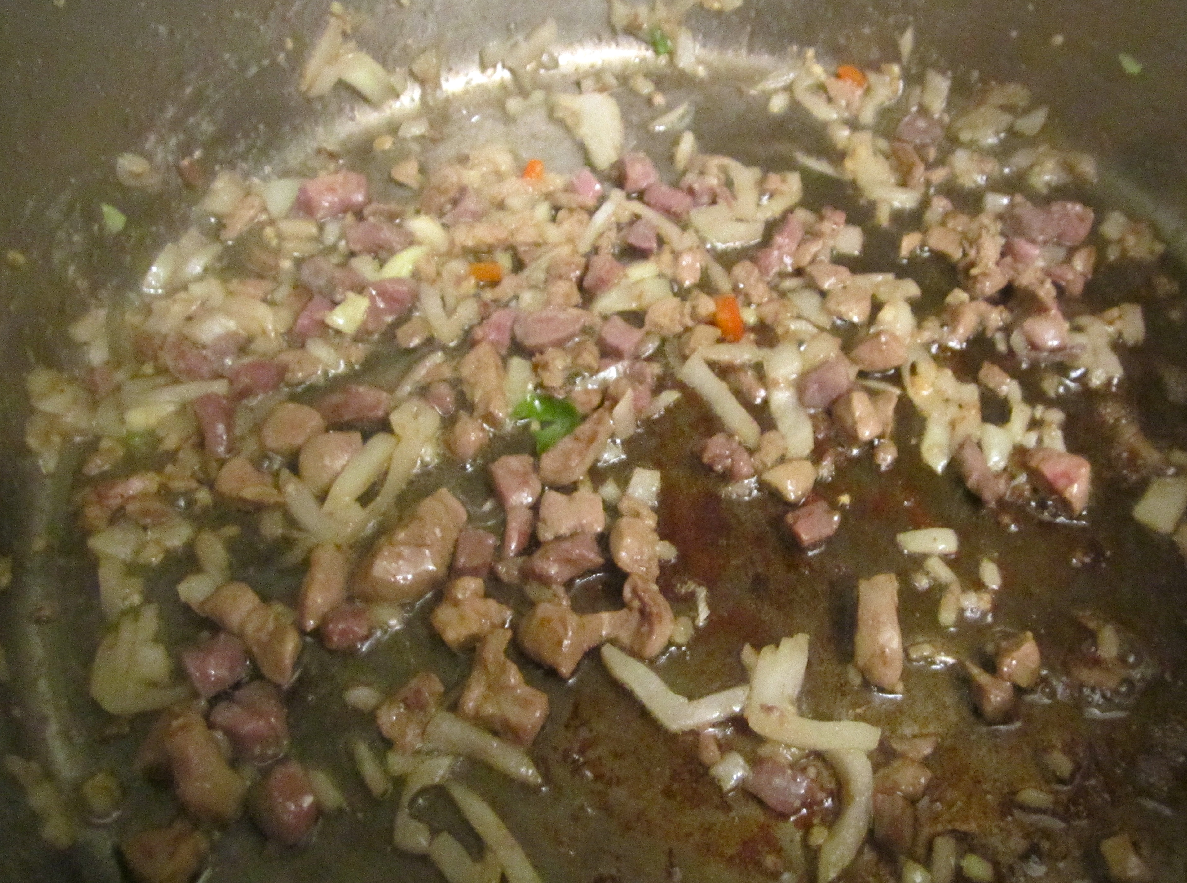1 Next → saute chopped duck liver and duck gizzard with onion, scallion, garlic paste and grated ginger in peanut oil