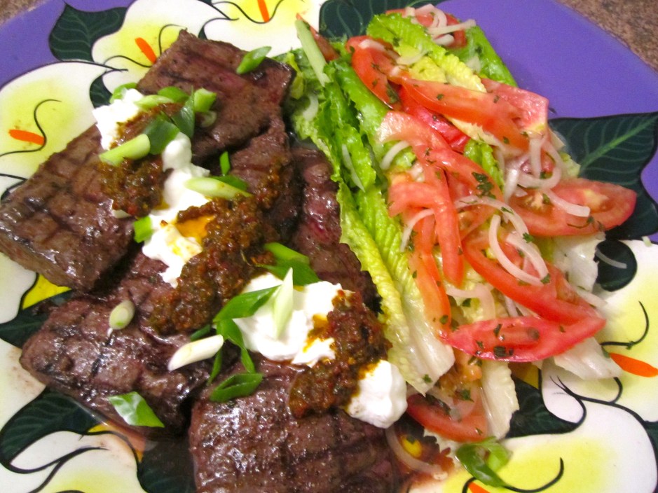 season steaks with sea salt, granulated garlic and freshly ground black papper
