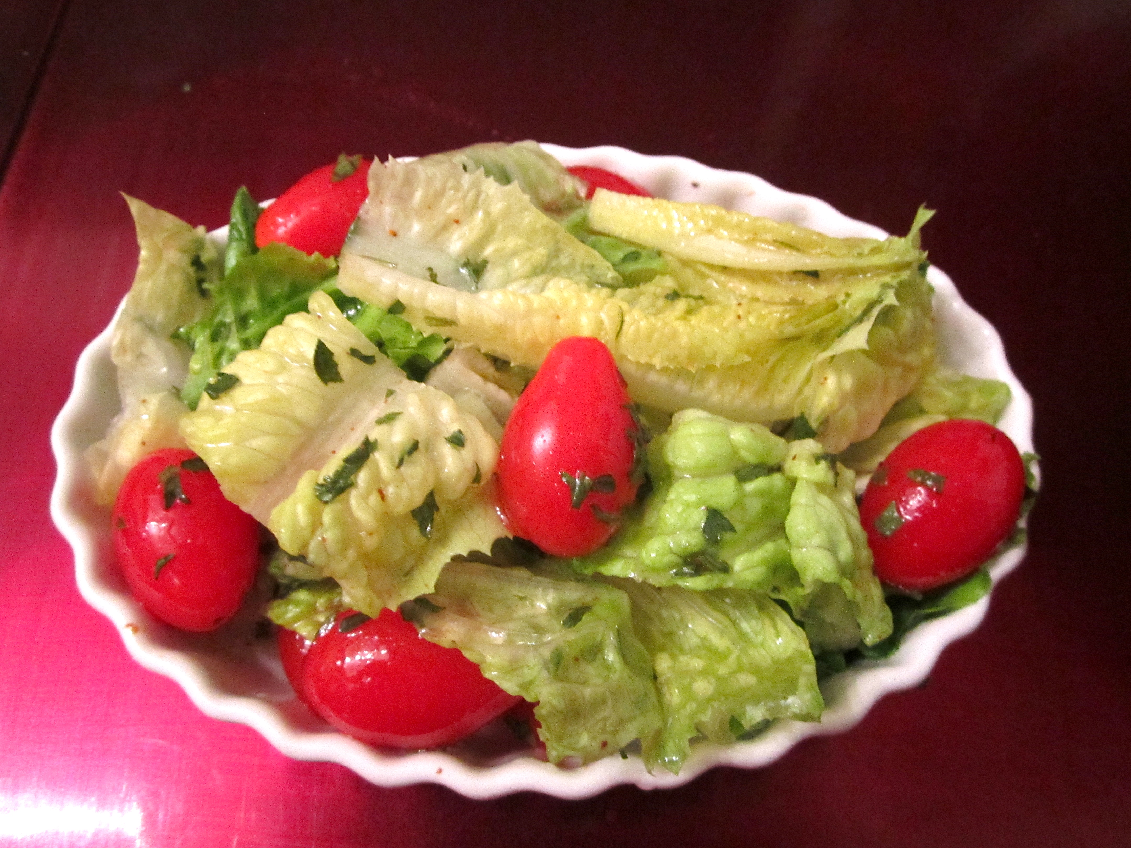 lettuce, grape tomatoes and honey/herb vinaygrette