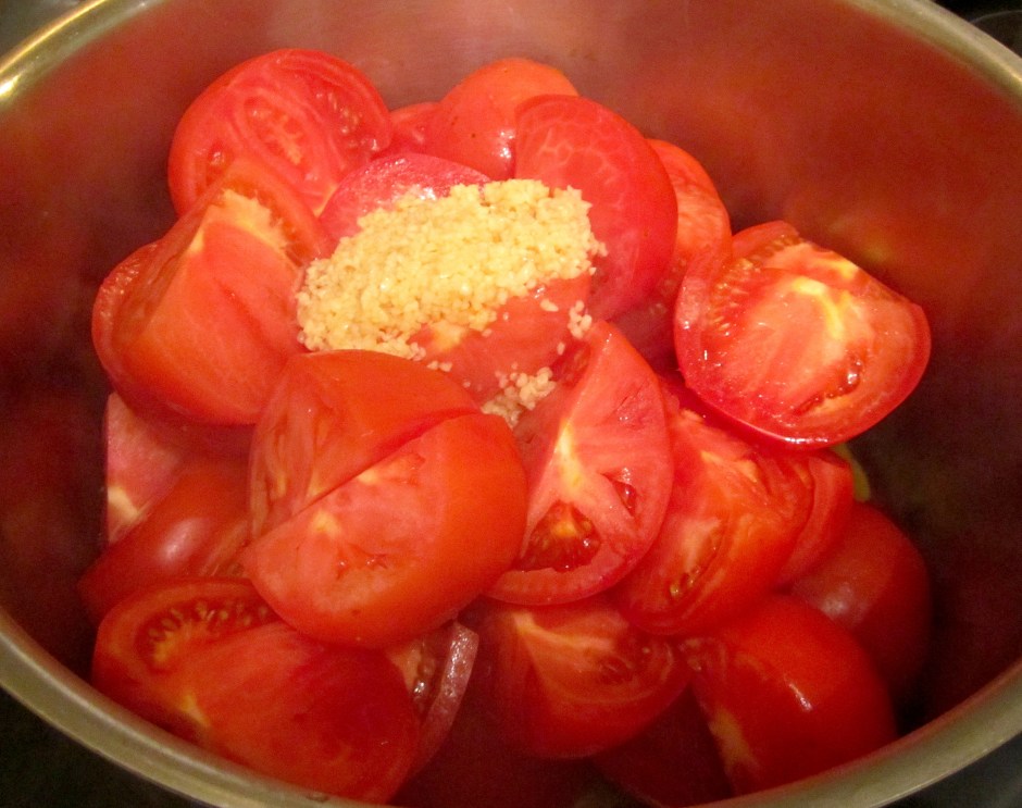 2 ← Previous Next → tomato sauce – quartered tomatoes, sauteed garlic, sea salt, cayenne pepper, sugar, small amount of diced potato, water or tomato juice