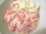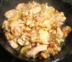 – Most folks would use skin less chicken breast for this dish. I personally prefer the legs, I feel it gives me a better texture. I remove the skin and cut it to the same size as the meat and cook it together making sure the skin renders and get’s crispy.