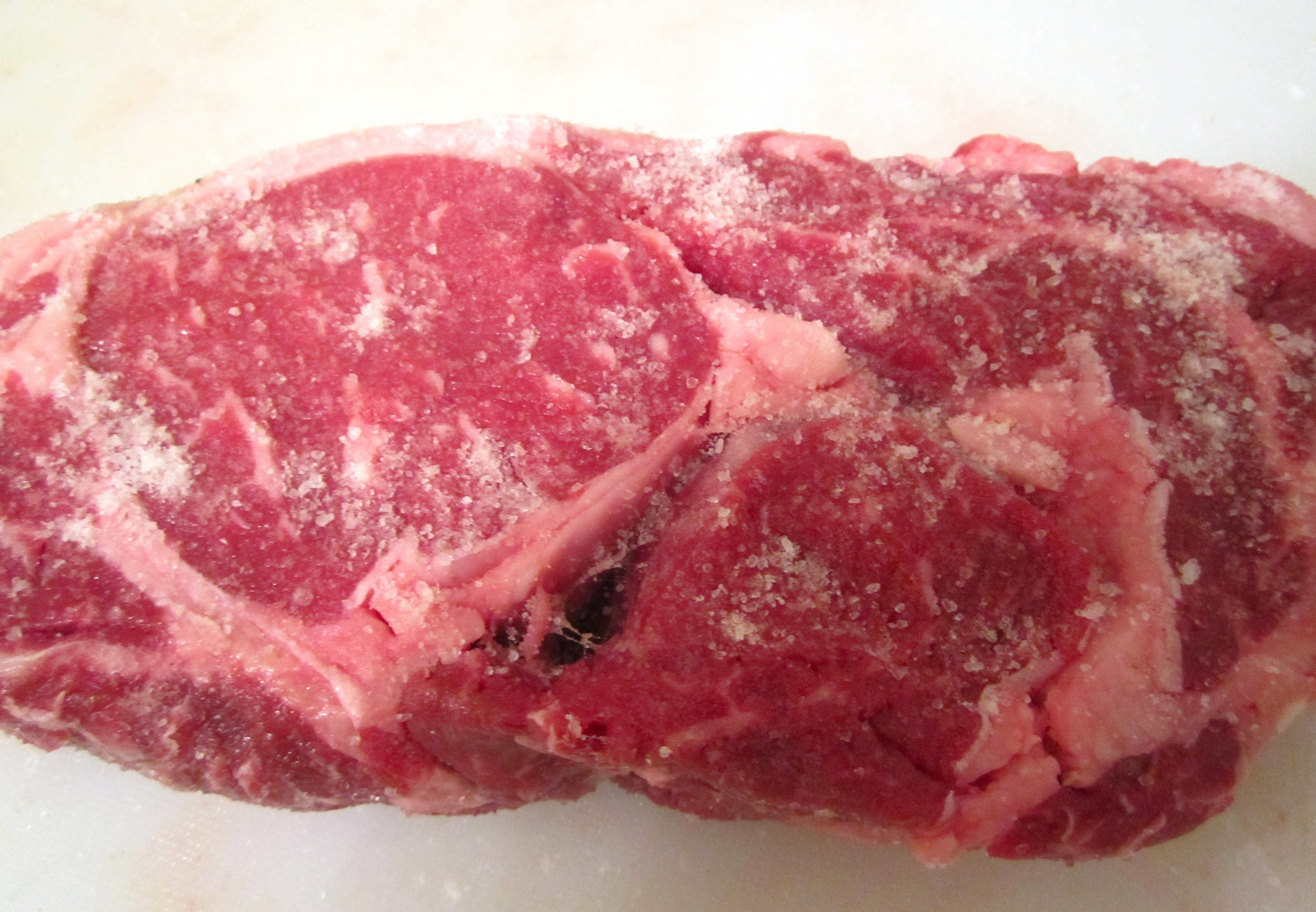 season steaks liberally with salt