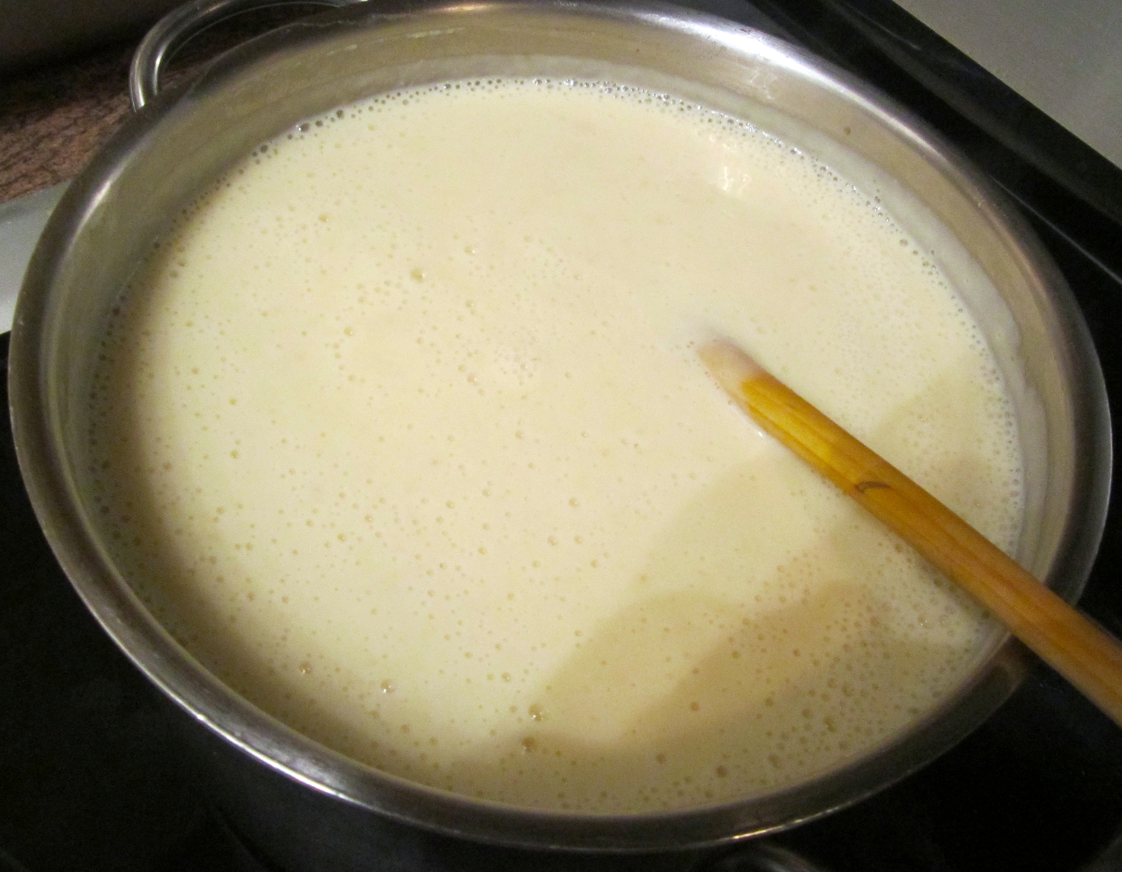 put back on heat, bring to a simmer