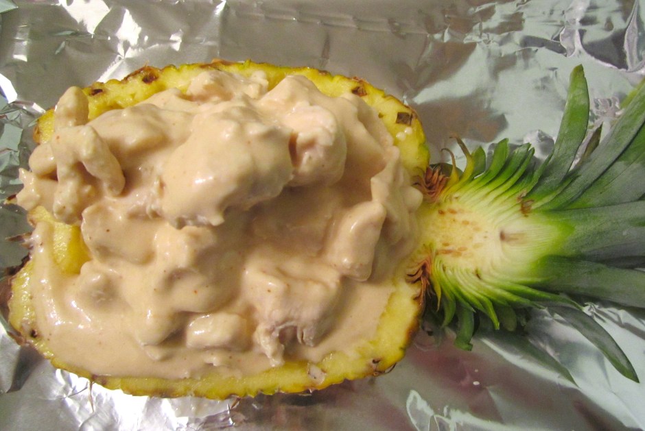 fill hollowed half pineapple with salpicon
