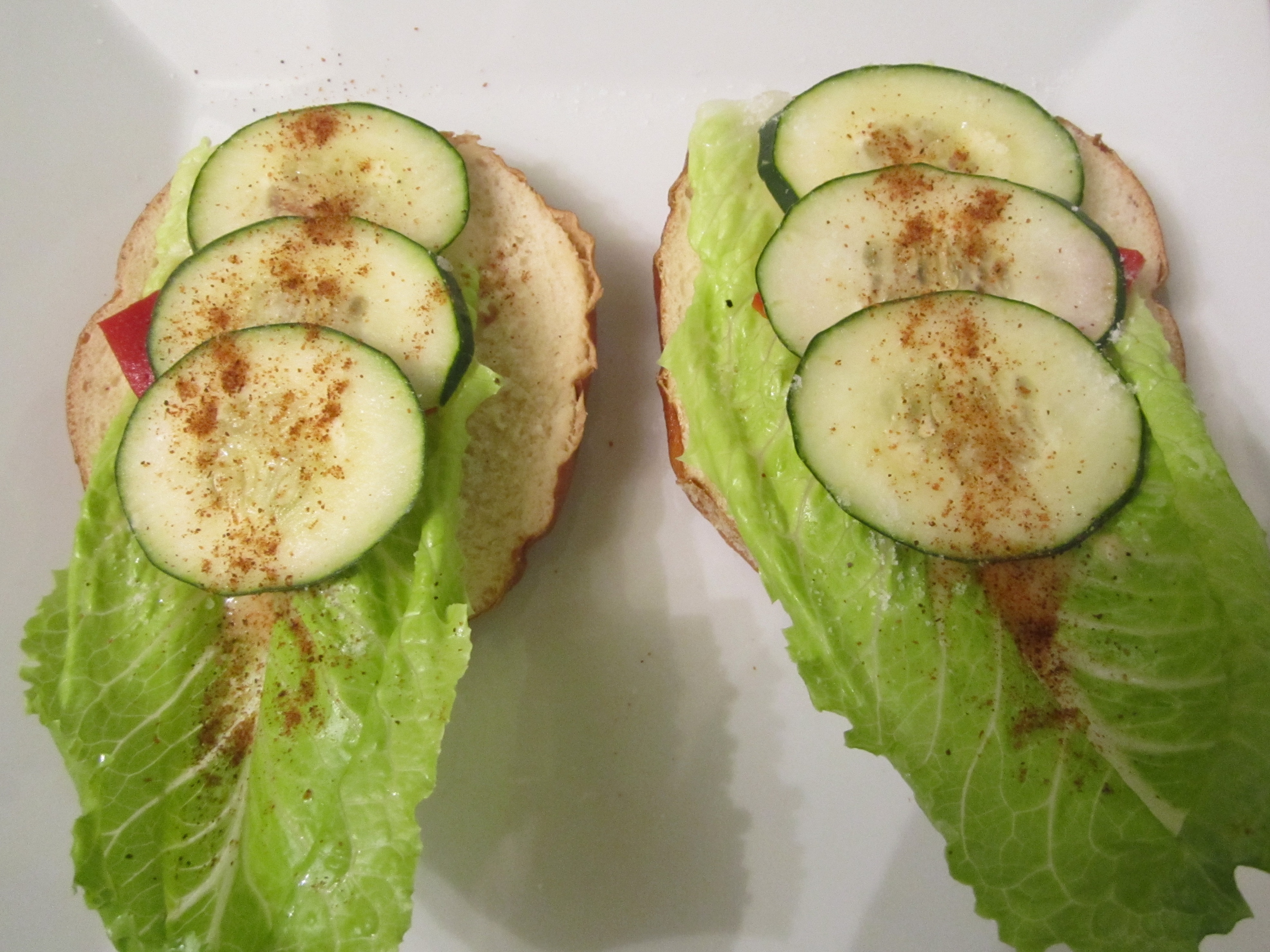 top with cucumbers, sprinkle liberally with kosher salt and cayenne pepper
