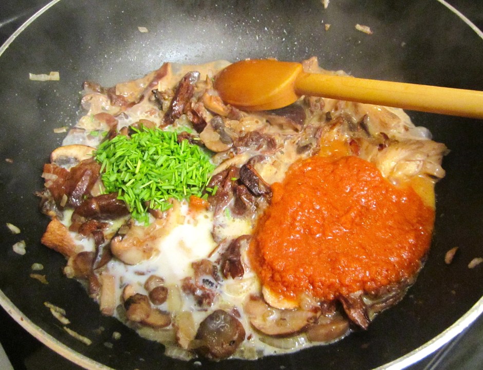 4 ← Previous Next → add heavy cream, demi glace, merlot, sliced chives, porcini powder, kosher salt and cayenne pepper