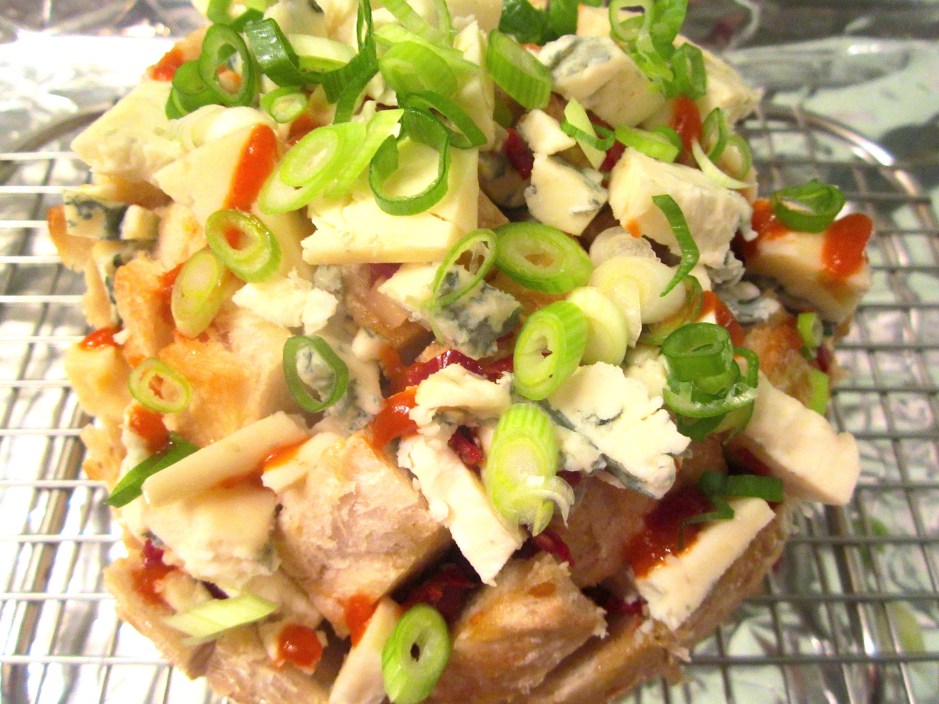 2 ← Previous Next → score bread in a criss-cross pattern about half way down, in a bowl, mix all remaining ingredients, then stuff them into the breads cavities.