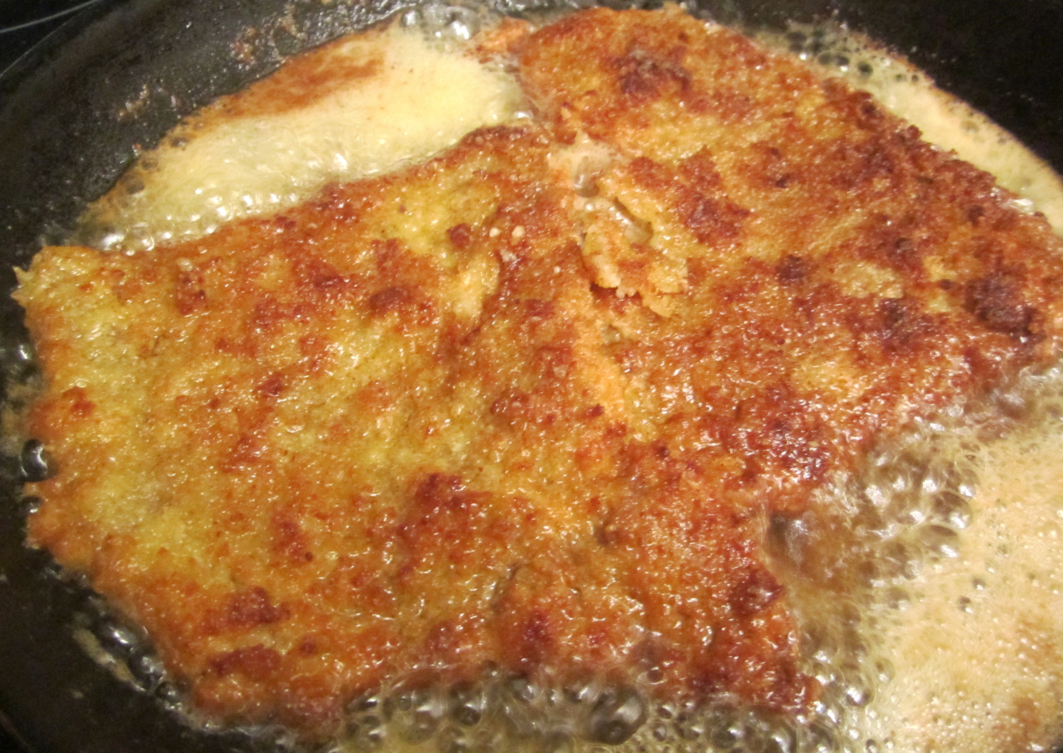 2 ← Previous Next → season veal cutlet with kosher salt and cayenne pepper, bread with flour, egg and breadcrumbs, saute in olive oil and butter until golden and cooked medium well, remove to absorbent paper