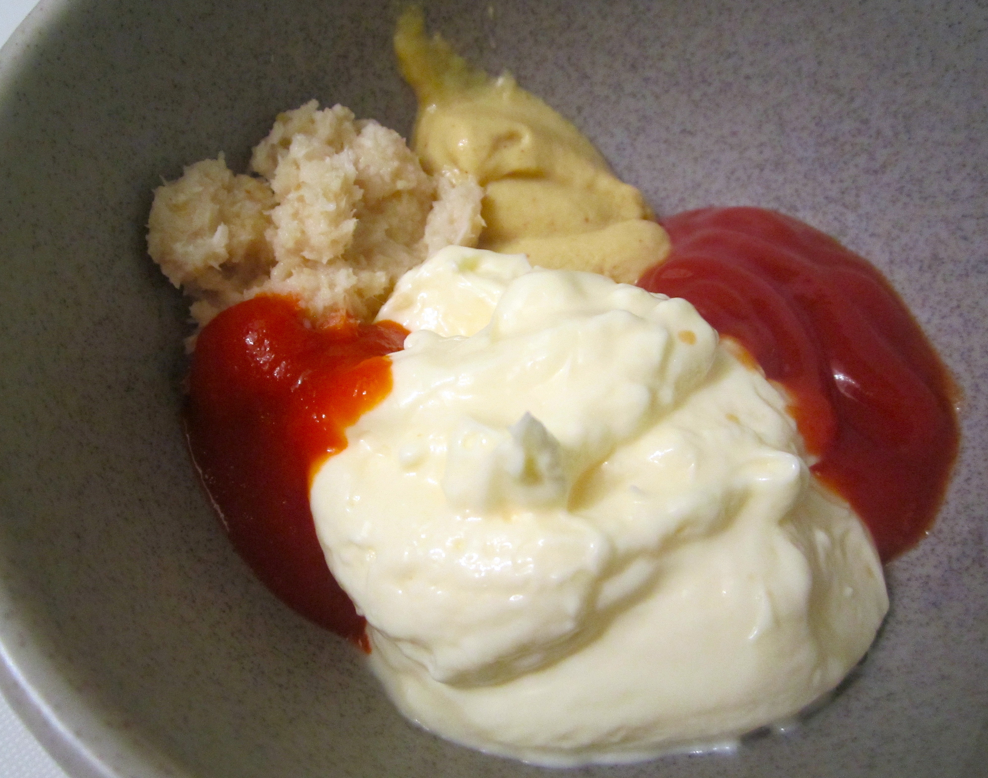 3 ← Previous Next → mayonnaise, sriracha, ketchup, brandy, horseradish, dijon mustard, kosher salt, cayenne pepper, lime juice