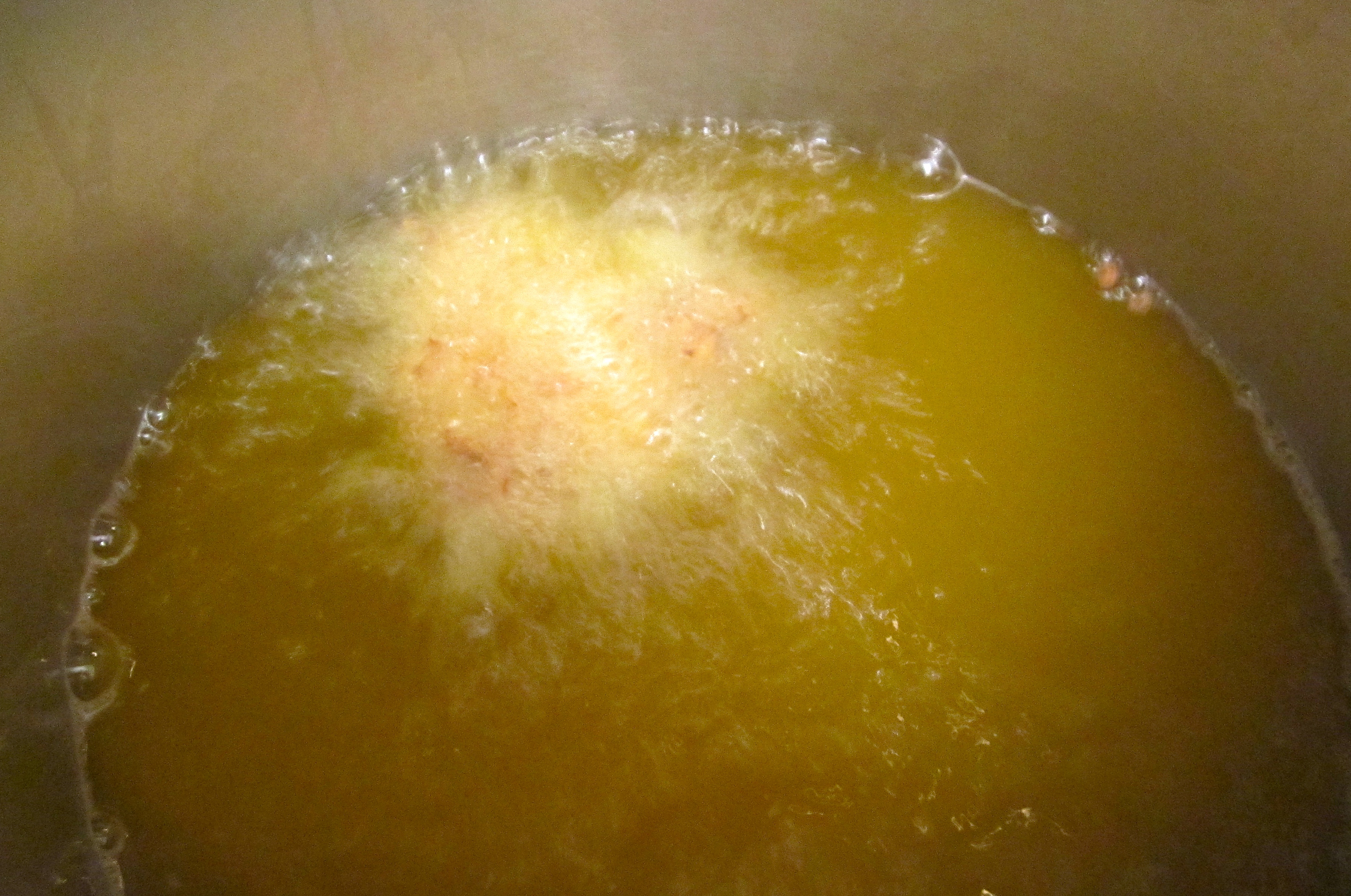 9 ← Previous Next → after 10 minutes frying the chicken, add the seasoned totatoes, fry until soft on the inside, crispy and golden on the outside Bout 15 more minutes, during the last 5 minutes, ingrease the temperature of the oil to 375F