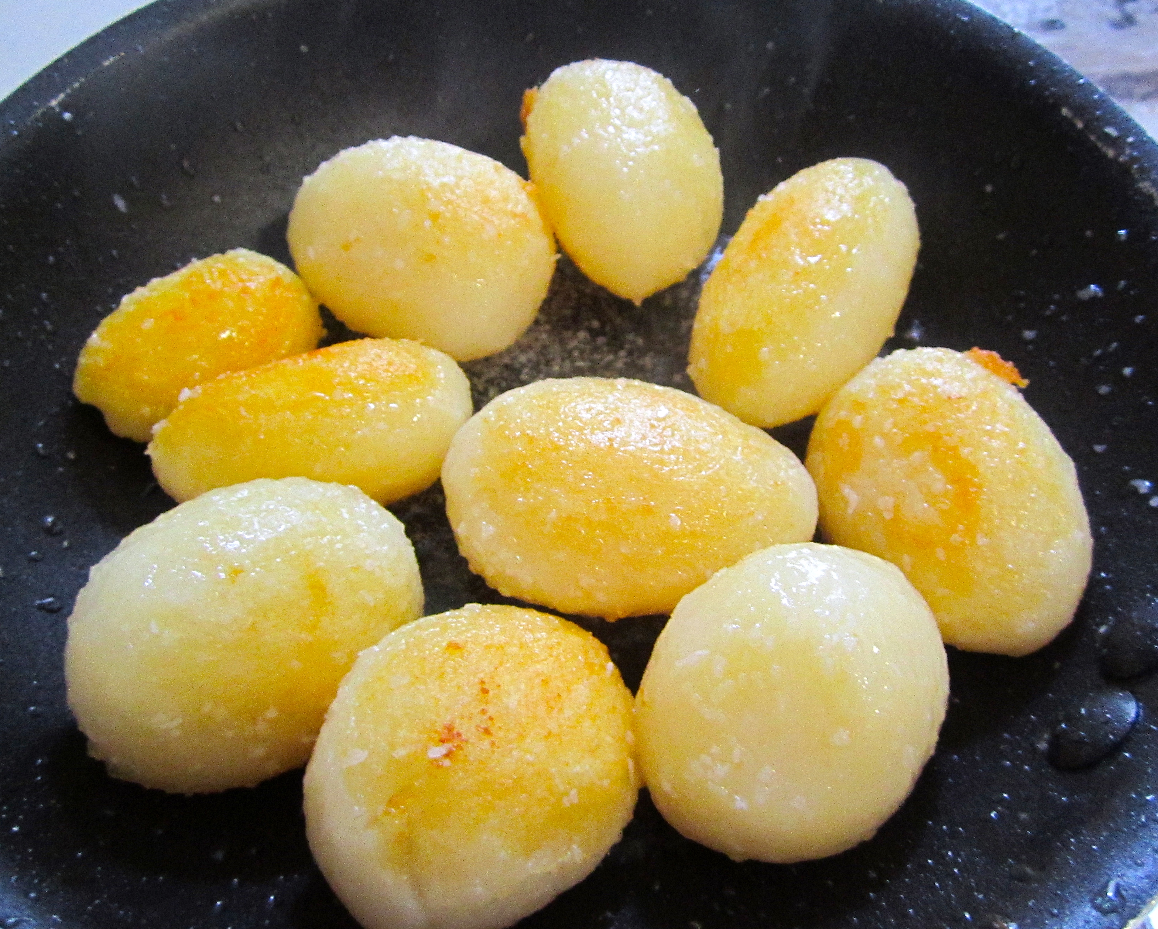 12 ← Previous Next → saute small blanched potatoes in garlic oil until golden, season with kosher salt and cayenne pepper