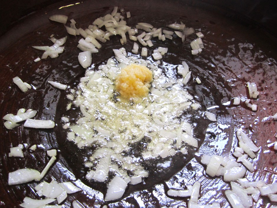 add garlic confit paste, saute until garlic is fragrant