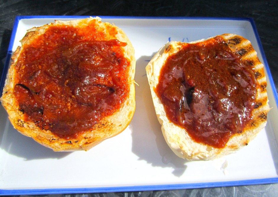 top both halves of buns with onion/sauce