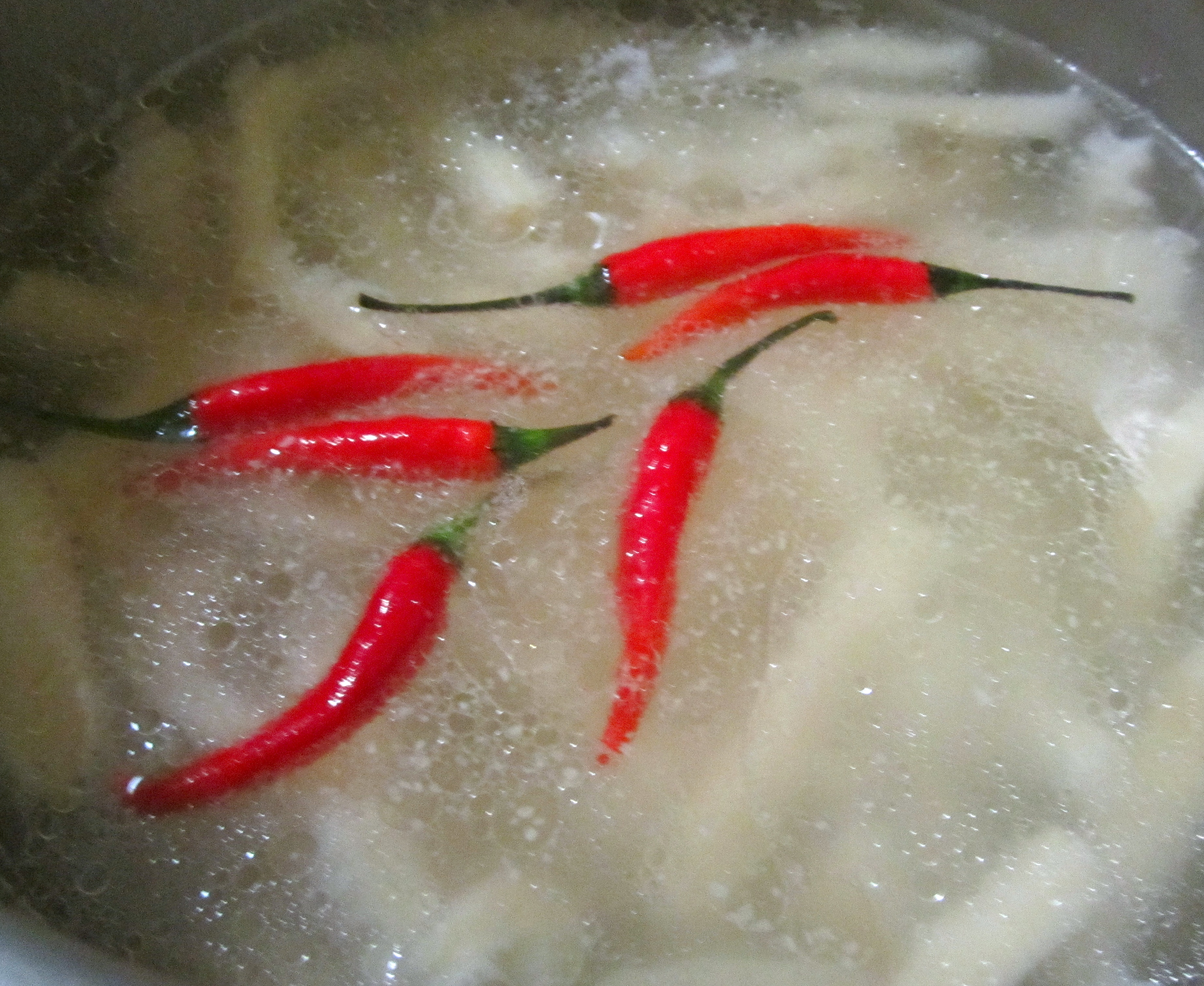 4 ← Previous Next → finish cooking with chilies, kosher salt, grated ginger and garlic paste, strain, keep hot