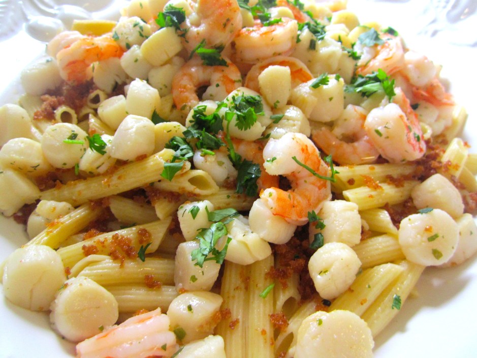 Scallops & Shrimp In Herb and Garlic Butter, With Penne Rigate And Pangrattato