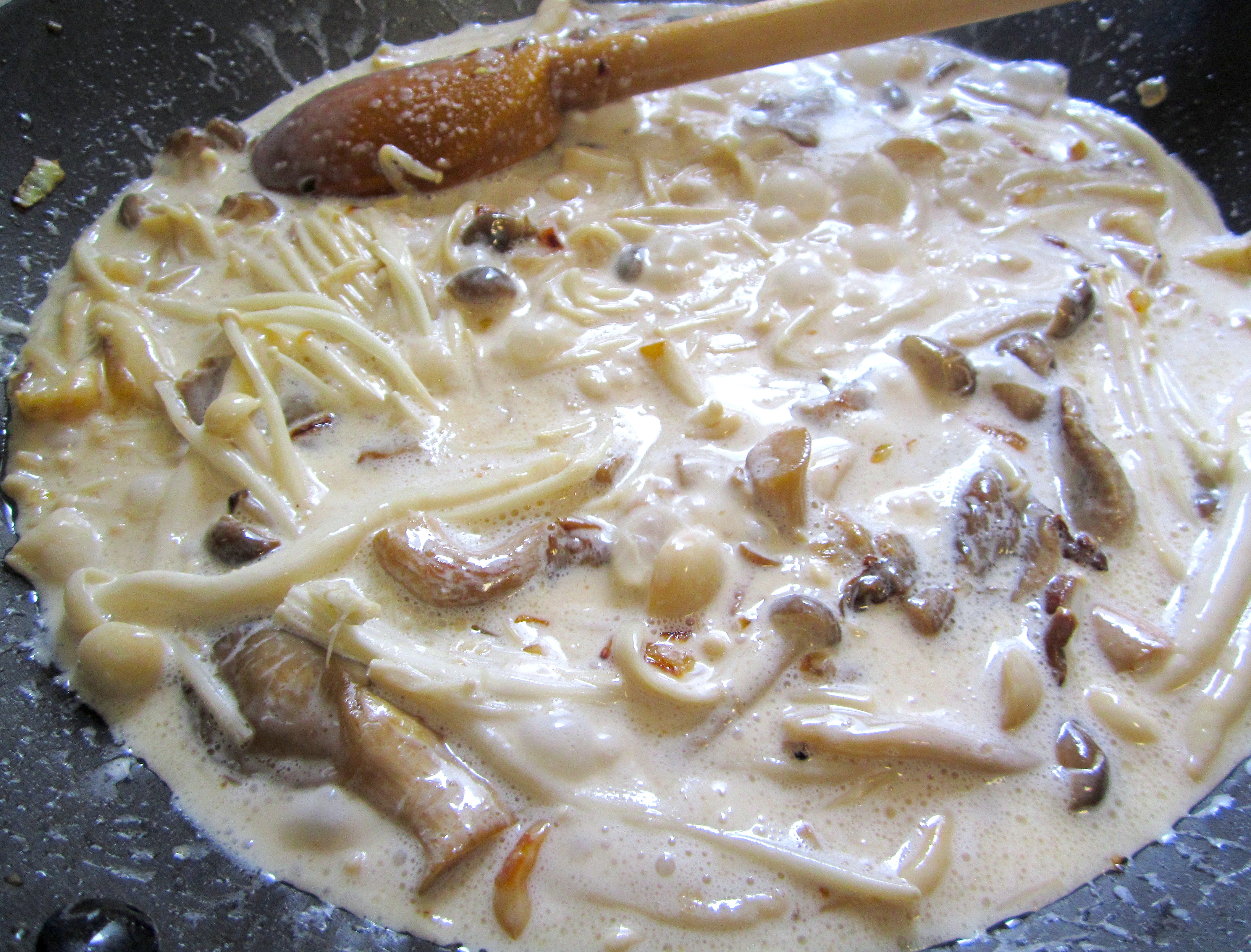 6 ← Previous Next → add white wine and heavy cream, simmer one minute, remove from heat, season with kosher salt and white pepper