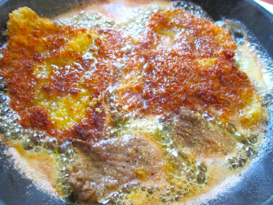 1 Next → bread scallops in flour, eggs and panko, saute in butter until golden and crispy (the un-breaded one on the bottom is Bella’s portion)