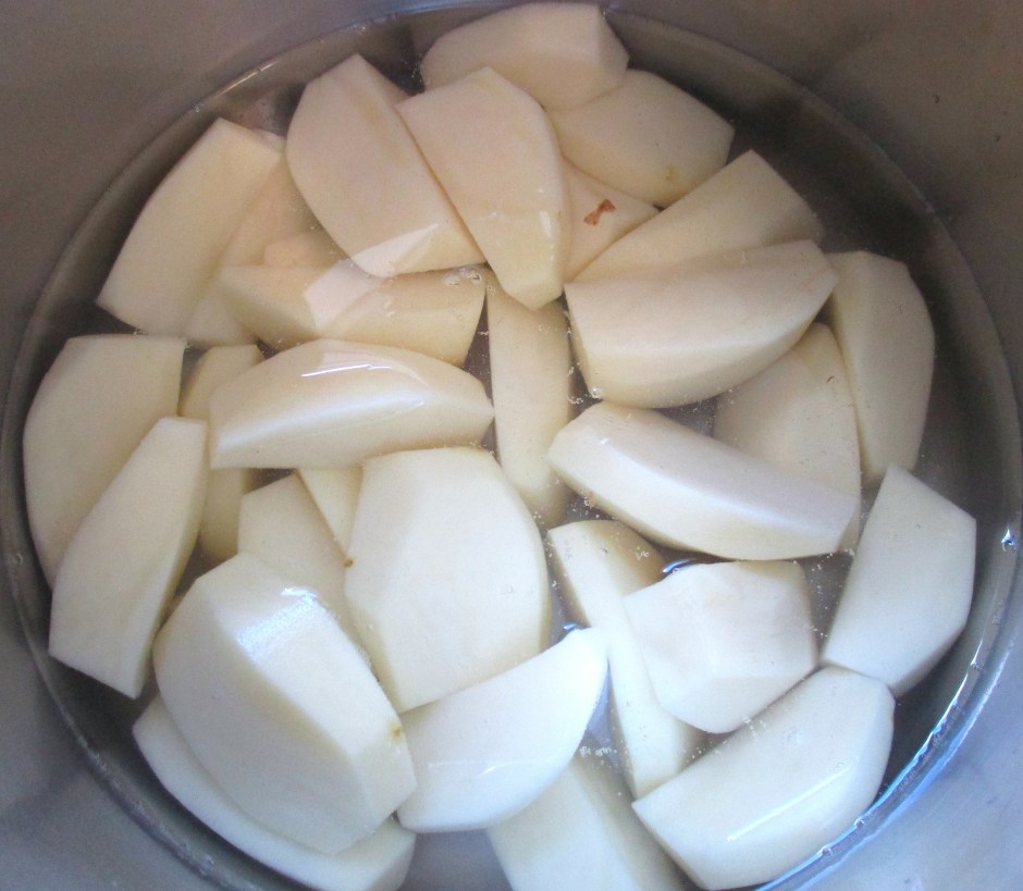 simmer potatoes in saltwater until tender, drain