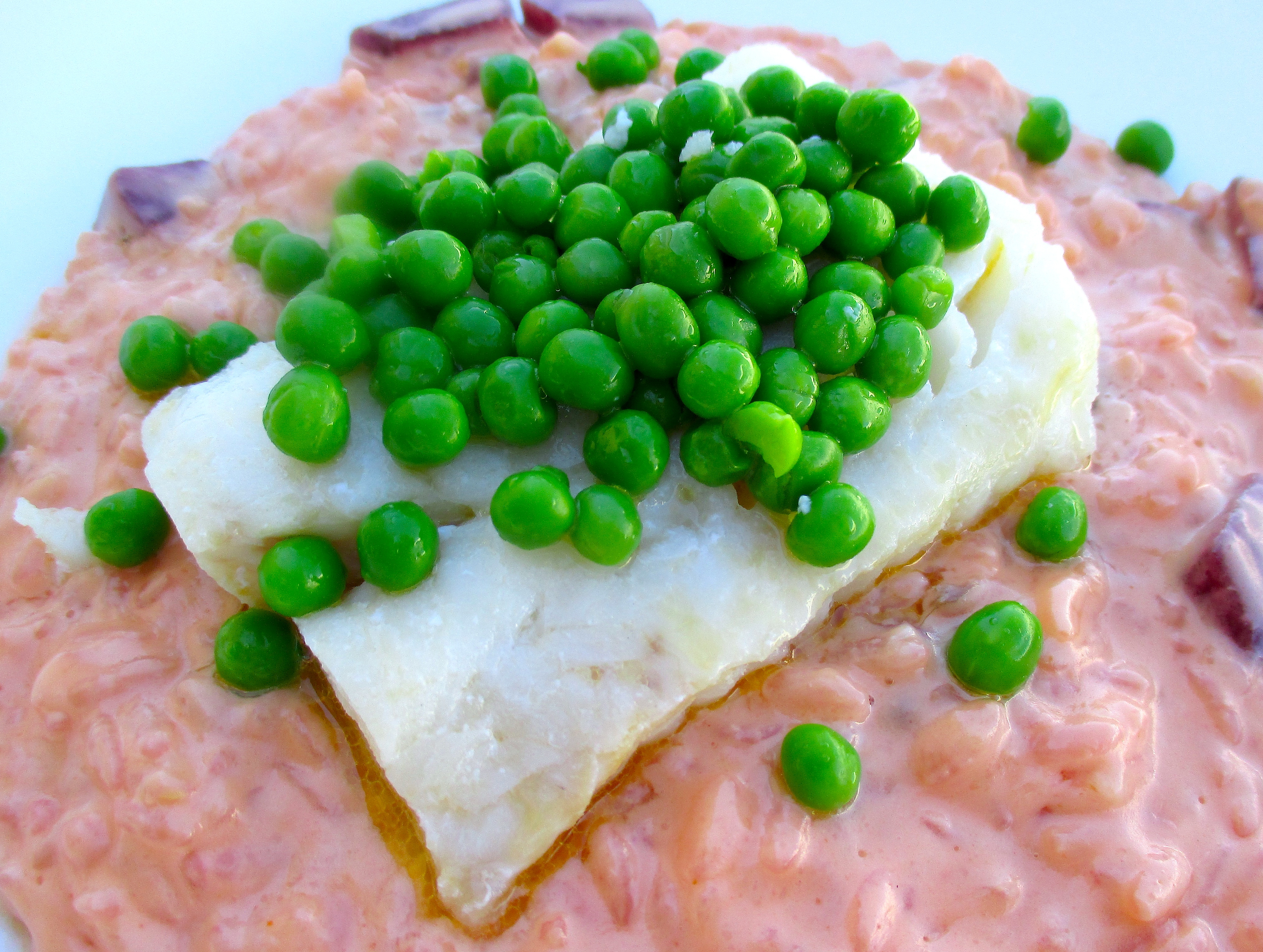 Steamed Cod Filet With Red Beet Risotto And Peas ← Previous Next → Steamed Cod Filet With Red Beet Risotto And Peas