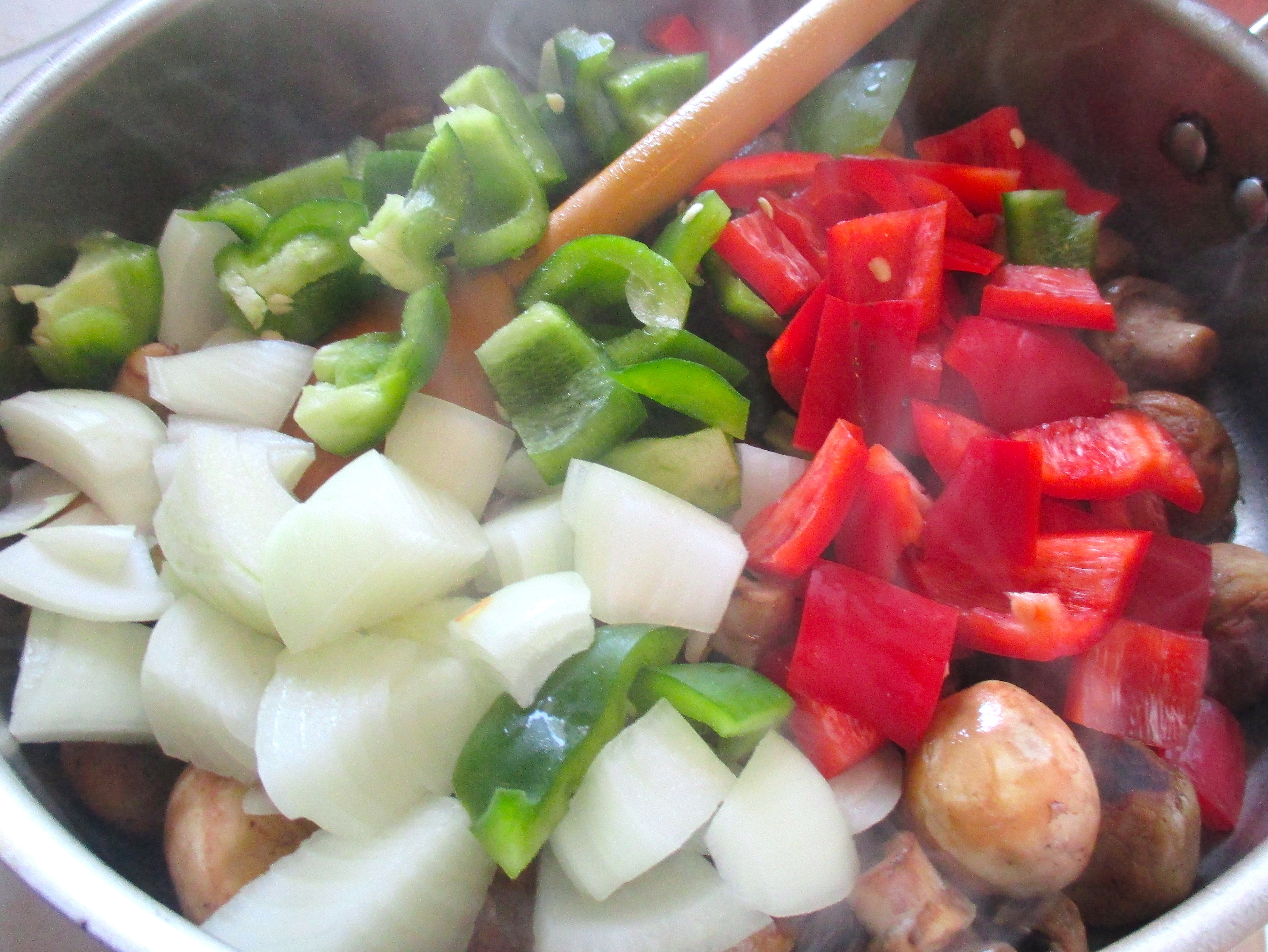 add onions and peppers (or other veggies of your choice)