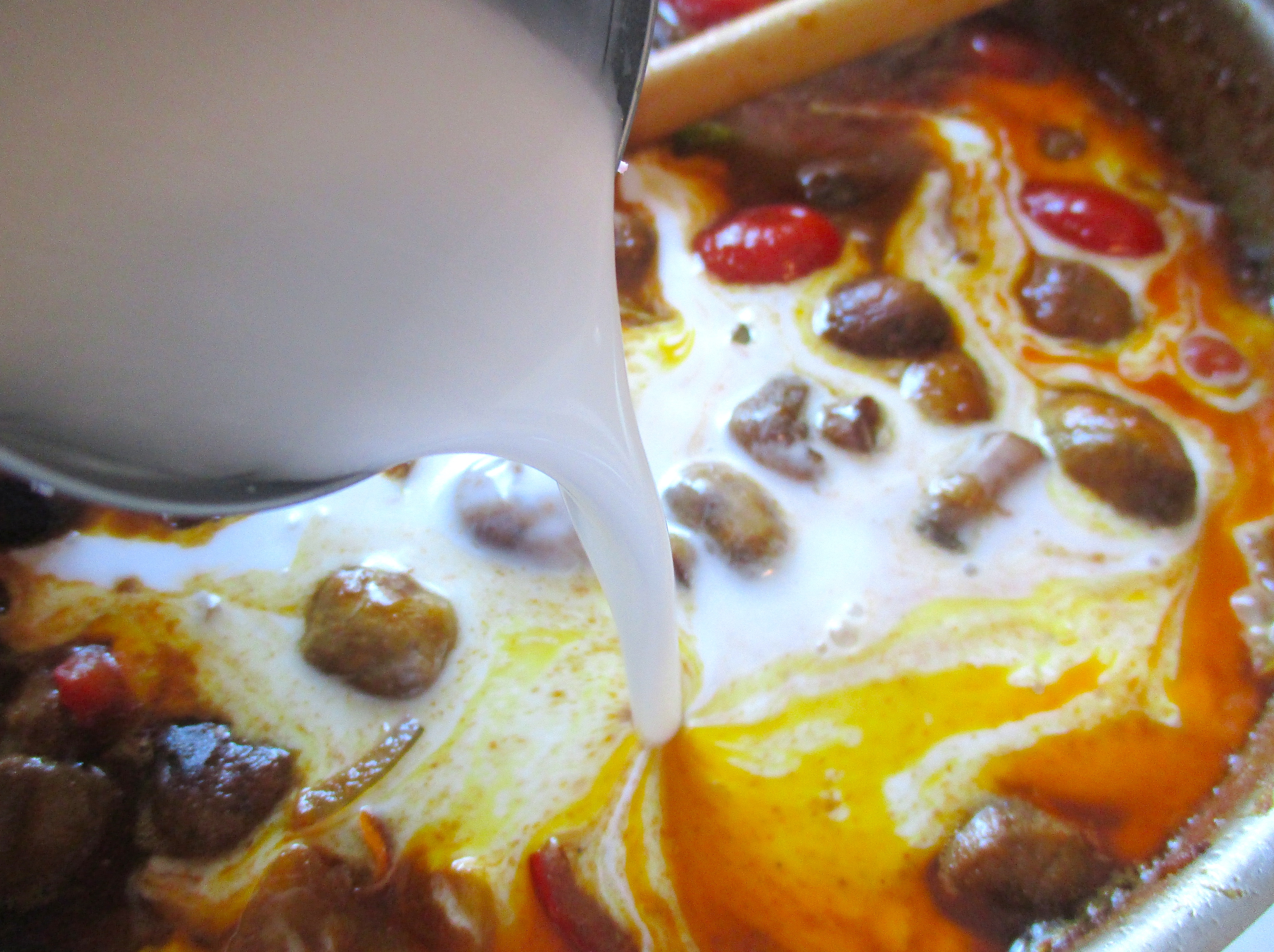 coconut milk ← Previous Next → add coconut cream, tomatoes and lots of chopped cilantro, simmer three more minutes or until sauce has desired texture, check / adjust seasoning