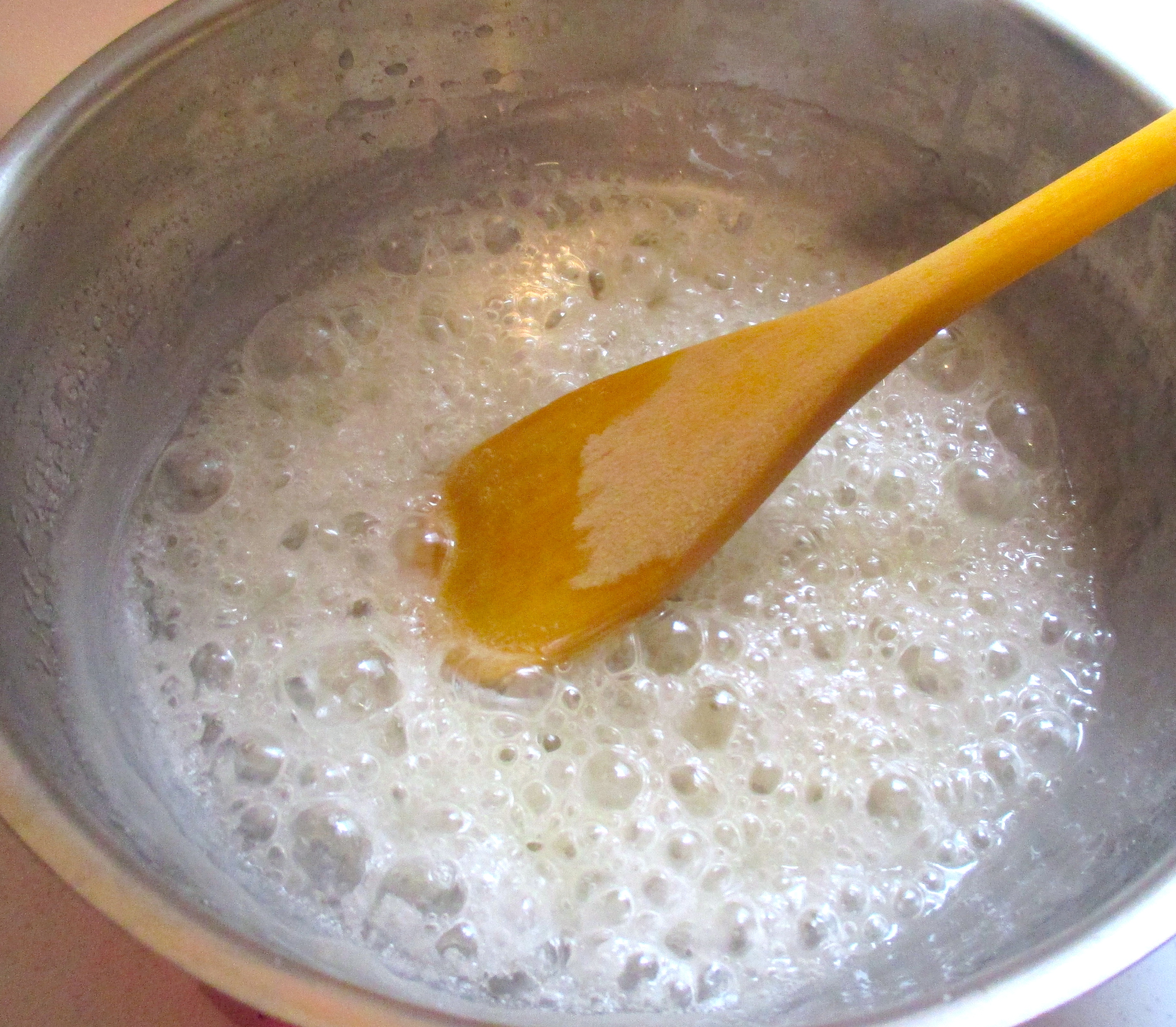 cook sugar and water over low heat, constantly stirring