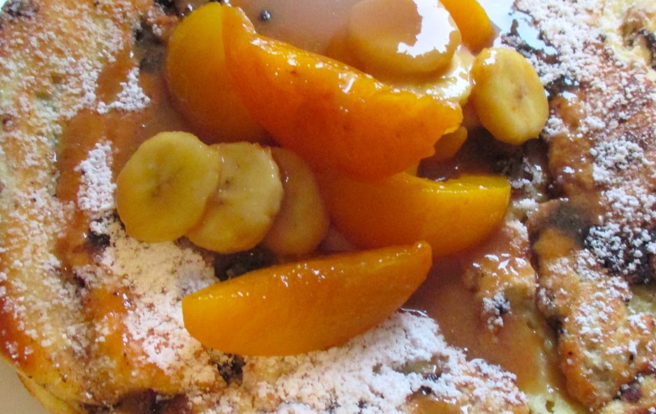 German Chocolate Pancake & Fruit Caramel Sauce