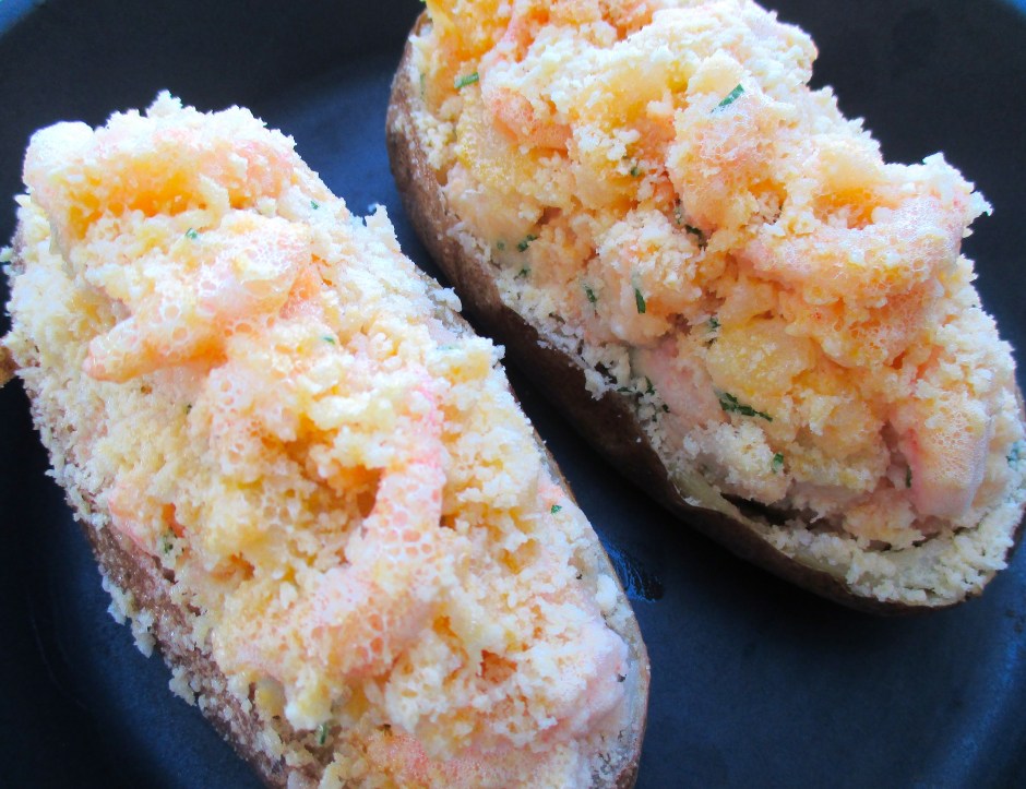 twice baked idaho potato with shrimp patty ← Previous Next → spray with melted butter, sprinkle with panko and parmesan