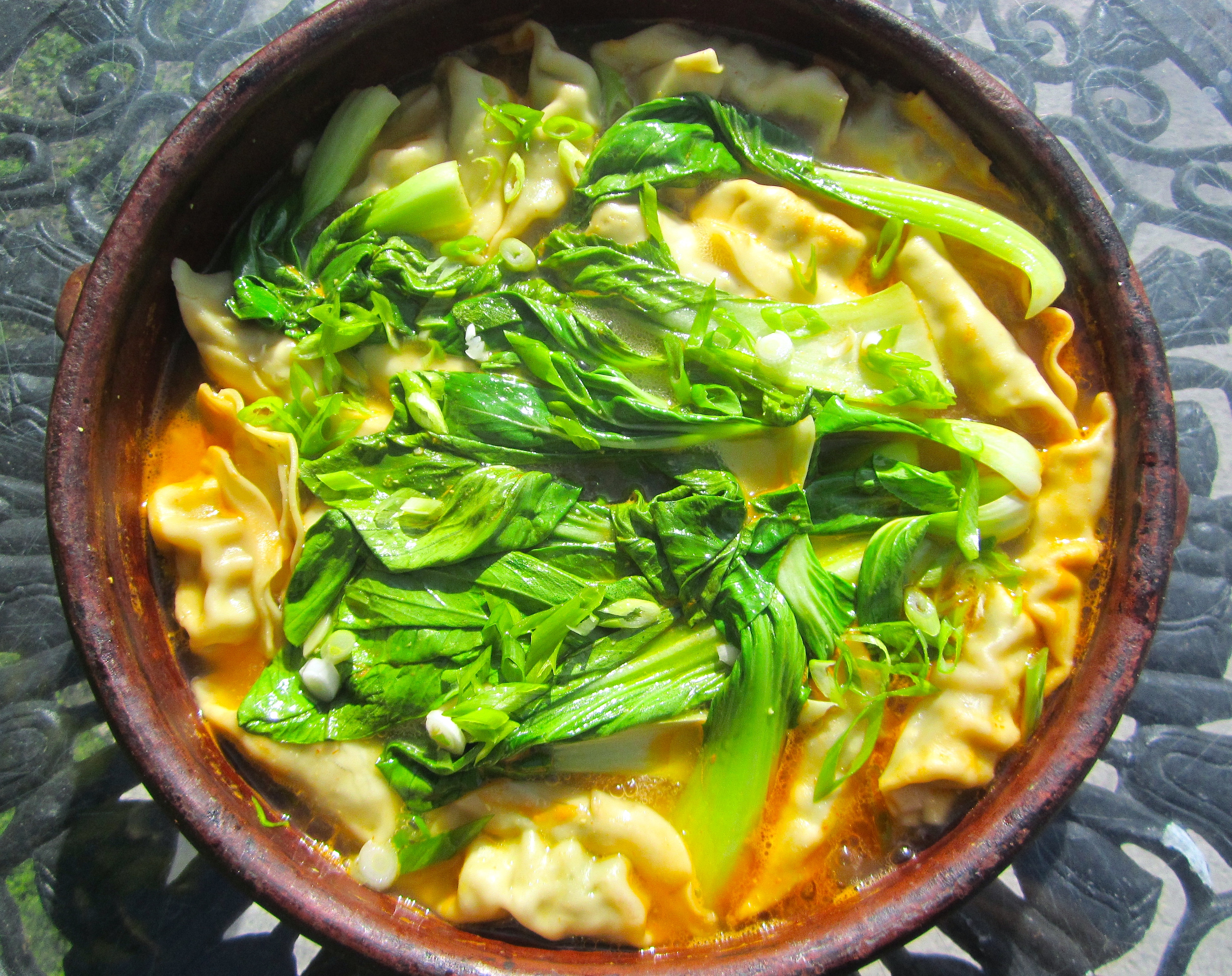 Pork Soup With Pork & Leek Dumplings, Baby Bok Choy And Scallions