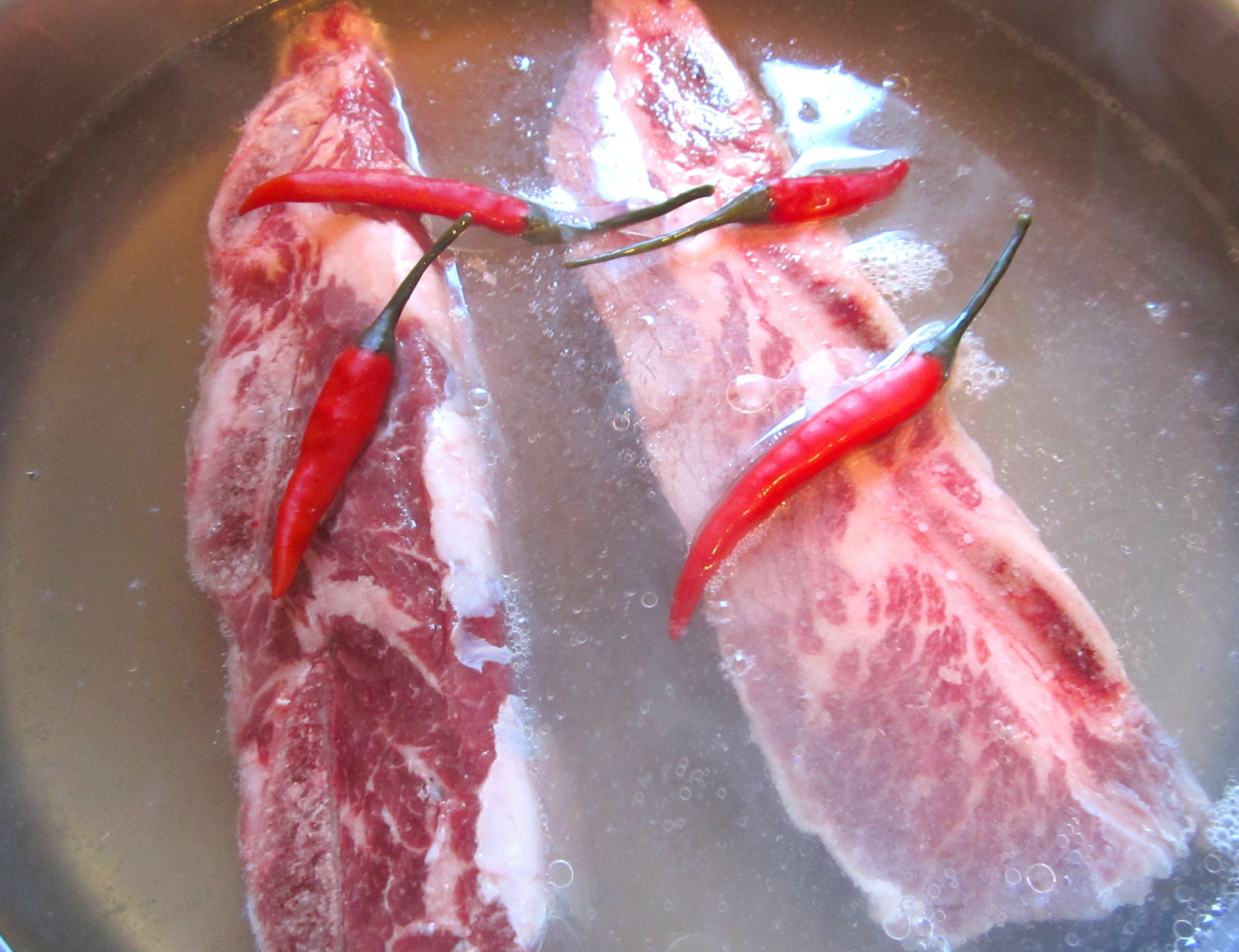 Beef , Shiitake And and Mung Bean Noodles In Ginger.Garlic Broth Next → simmer beef with chilies garlic paste, grated ginger, kosher salt and fresh ground black pepper and a dash of five spice powder