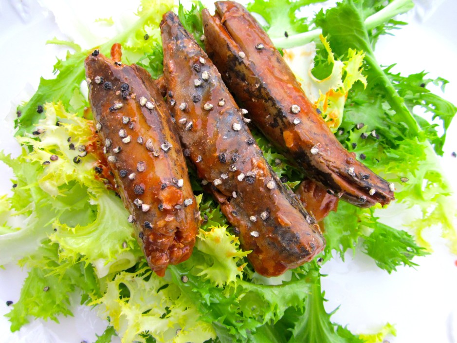 Salad Portuguese ← Previous Next → top frisee with sardines in tomato sauce, (PLEASE use a top notch product), sprinkle with freshly ground black pepper