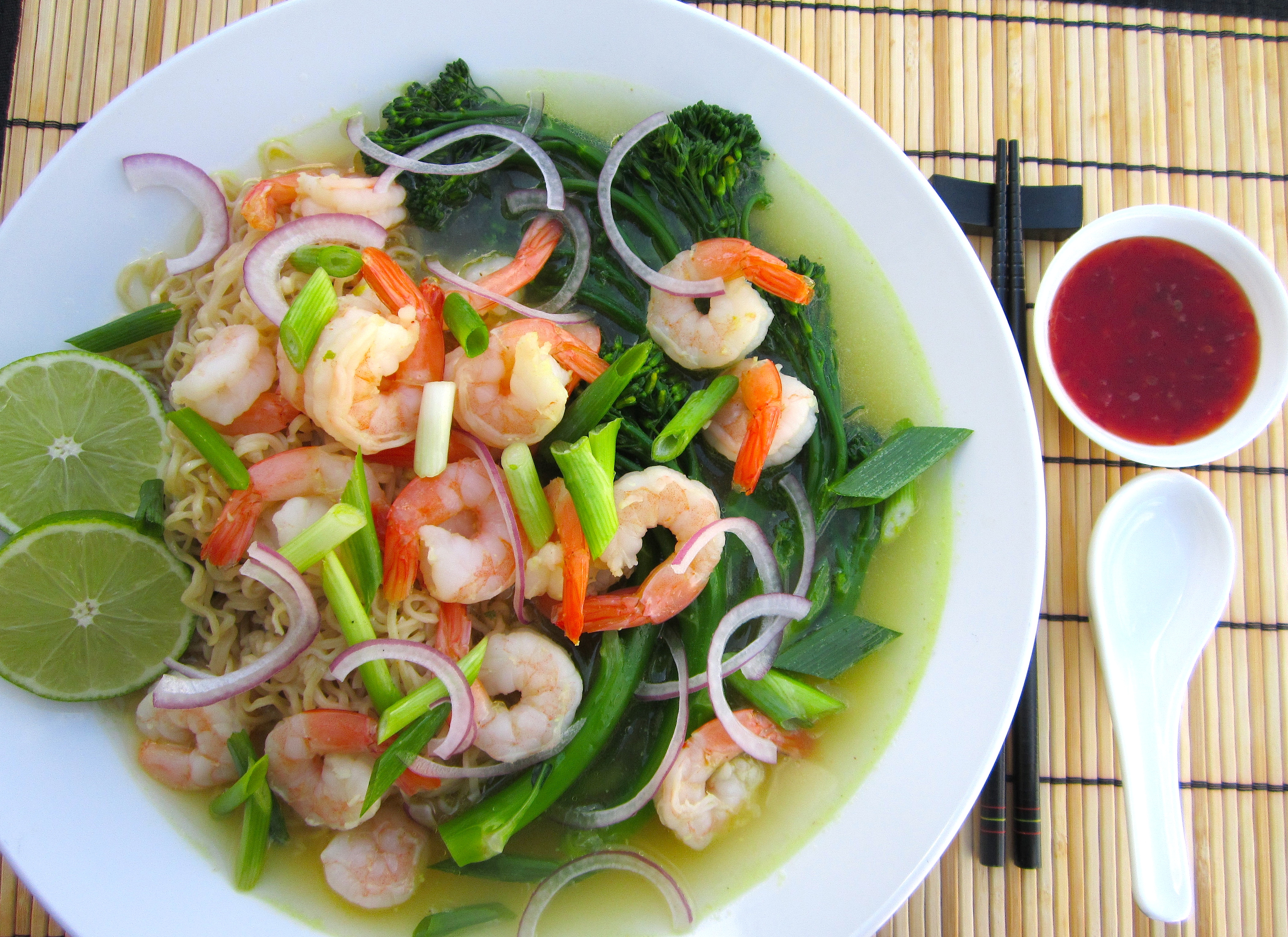 Shrimp, Broccolini And Ramen Noodles In Ginger.Garlic Broth Next → Shrimp, Broccolini And Ramen Noodles In Ginger.Garlic Broth