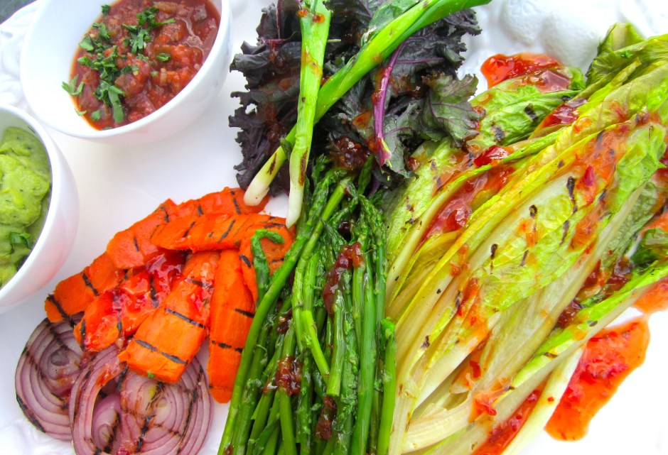 Grilled Roman Romaine Feast ← Previous Next → drizzle all veggies generously with thai chili sauce, add guacamole and salsa mexicana for dipping